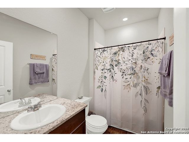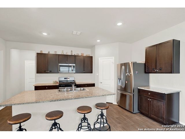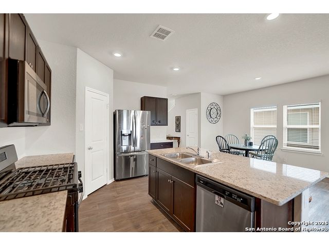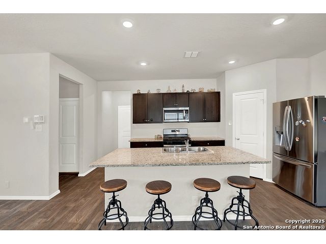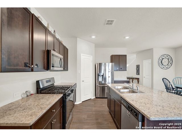 Welcome to this beautiful well maintained spacious 5-bedroom, 3-bath home nestled on a greenbelt lot in the highly sought-after Riverbend Golf Course community. This inviting home offers the perfect blend of comfort, style, and location. Step inside to find an open and flexible layout with a well-appointed kitchen with plenty of cabinet space, and generously sized bedrooms - perfect for families of all sizes. The primary suite is thoughtfully separated from the secondary rooms, offering privacy and a relaxing retreat at the end of the day. One bedroom downstairs would make an amazing office space or a separate guest suite. Enjoy your morning coffee or evening sunsets from the back patio overlooking the greenbelt, with no rear neighbors for added peace and privacy. Whether you're an avid golfer or simply looking for serene surroundings and a strong sense of community, this home checks all the boxes. Located just minutes from schools, shopping, and dining, with easy access to major roadways - you truly can have it all.