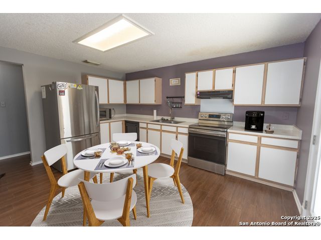 2.5-bath home located in the sought-after Woller Creek Subdivision! Enjoy a welcoming layout with separate living and dining areas-perfect for entertaining. Brand new carpet throughout. Bathrooms recently updated. The kitchen comes equipped with a stainless steel refrigerator, and both washer and dryer are included for your convenience. Unwind in the generously sized master suite with a private ensuite bathroom. Ideally situated near schools, including UTSA, this home offers both comfort and convenience. Don't miss out-schedule a viewing today!
