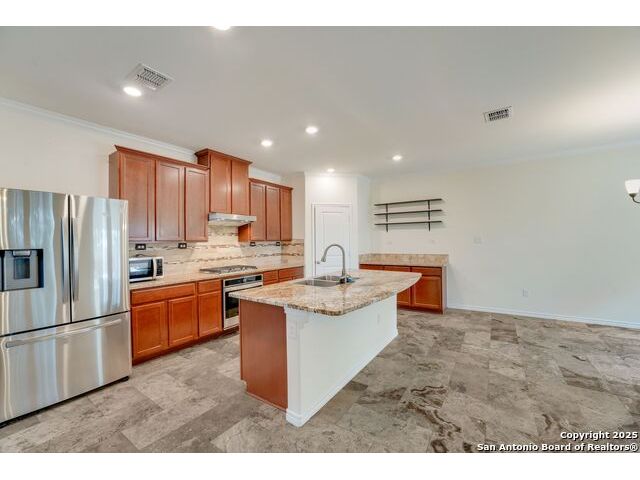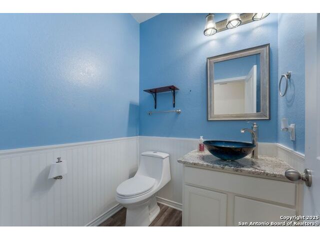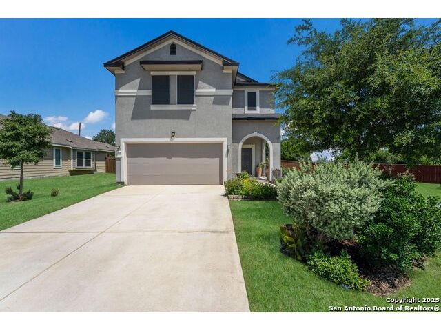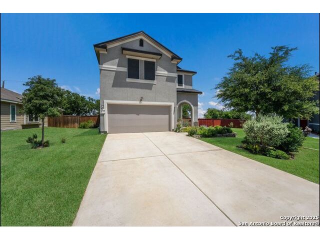 This spacious 4-bedroom, 2.5-bathroom two-story stucco home offers comfort, style, and functionality. The main level features a dedicated office and beautiful floating LVP floors, while the kitchen and dining area showcase travertine flooring, granite countertops, and elegant marble backsplashes. The half bath includes granite, a stylish glass bowl sink, and wainscoting for added charm. Upstairs you'll find all bedrooms, carpeted floors, and linoleum in the bathrooms. The master bathroom features a tiled shower, and there's refinished tile in the laundry room. Additional highlights include a tiled storage area under the stairs, solar shades, solar panels, a water softener with extra shut-off plumbing in the garage, and an outdoor sprinkler system. With an acceptable offer, the solar panels will be paid off by the seller at closing. Located in a community with park and playground amenities, this home has everything you need and more!