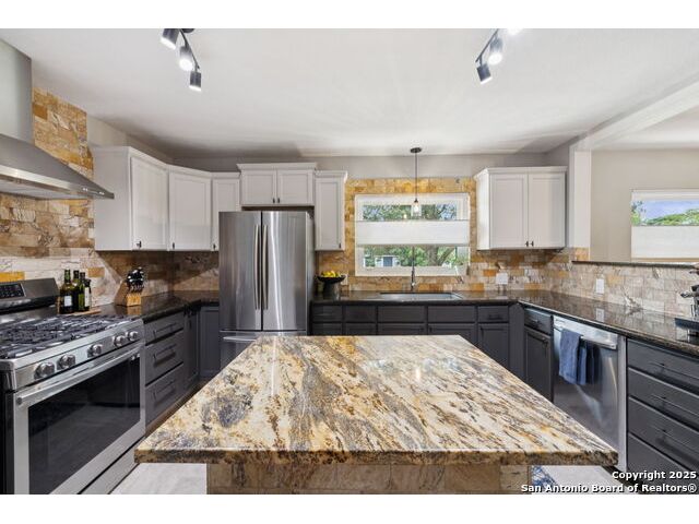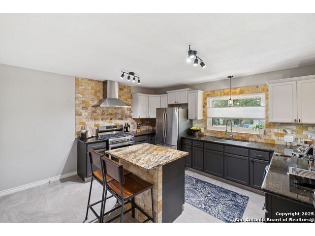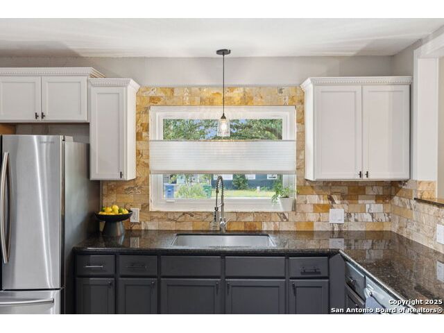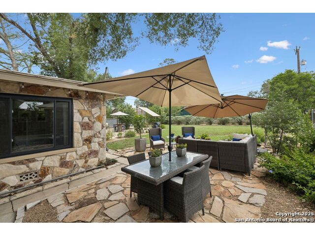 Welcome to this charming, 3-bedroom, 1-bath rock cottage in Terrell Heights. Sitting on 0.28 acre, this +/- 1450 square foot ranch located in AHISD welcomes you in through its spacious contemporary and hardwood-floor lined living and dining room combination. Off of it, you'll find a recently updated chef's kitchen completed with granite counters, upgraded cabinets, stainless steel appliances and designer light fixtures. The home's three bedrooms are generously sized and have lots of natural light. The home's bathroom is fully renovated, featuring a shower-tub combo and newer vanity. There's an amazing private, large backyard that is a sight to behold, featuring several outdoor living, dining and relaxing spaces. Other recent improvements: 34 concrete piers installed and 155' beam replaced in 2021; roof, soffits, fascia replaced in April 2021; tankless water heater installed in July 2021; windows replaced in January 2023; HVAC replaced in June 2023. Suffice it to say, this handsome home is well-maintained and completely move-in ready ... just waiting for its new owner. Come see it today.
