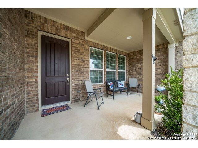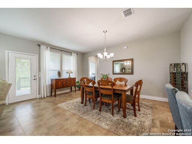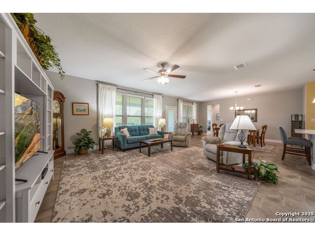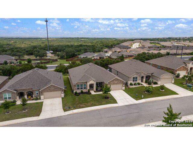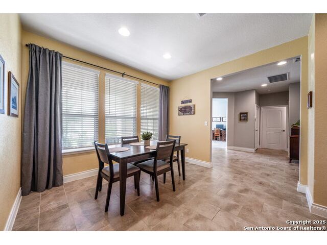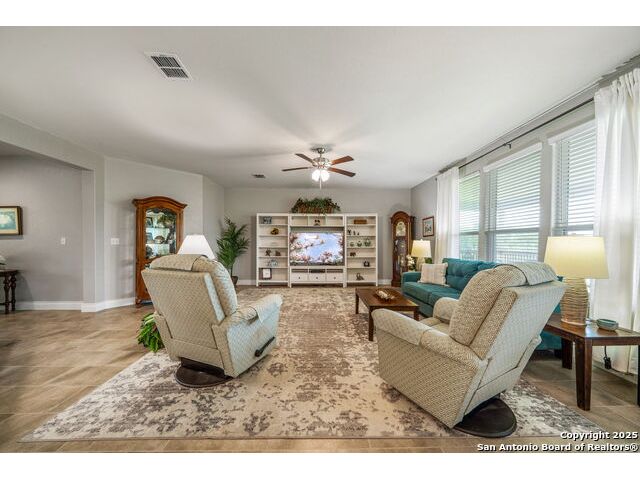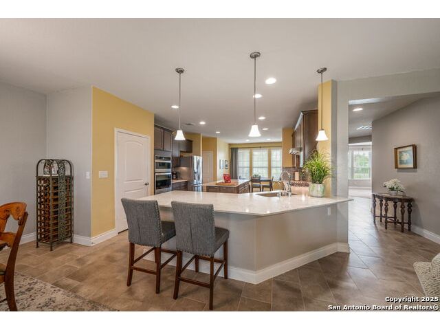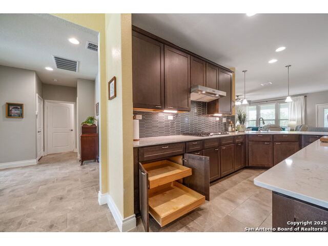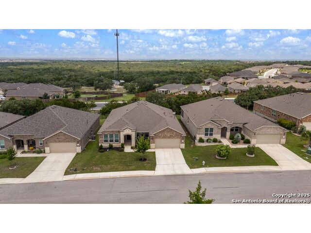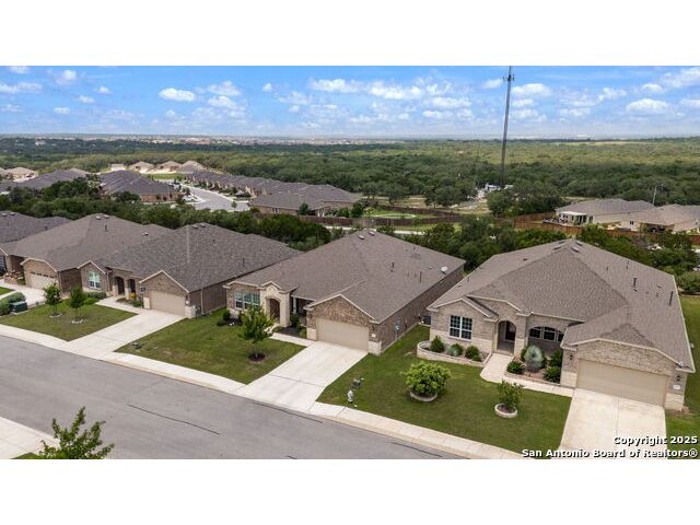 Resort-Style Living in San Antonio's Premier Active Adult Community! Welcome to Del Webb Hill Country Retreat, where comfort meets convenience in this meticulously maintained 2-bedroom, 2.5-bath single-story home, complete with an additional flex space-perfect for a home office, craft room, workout area, or guest retreat. Situated on a quiet cul-de-sac street with peaceful wooded greenspace views, this thoughtfully upgraded home is designed for easy, low-maintenance living. The open-concept layout features a welcoming chef-inspired kitchen equipped with quartz Silestone countertops, a stainless steel sink, 36" gas cooktop, built in oven & microwave, and a spacious walk-in pantry-ideal for both everyday living and entertaining. The serene primary suite offers a relaxing retreat with backyard views, a spa-like ensuite bath with walk-in shower, double vanity, and a generous walk-in closet. A private secondary bedroom with its own full bath ensures comfort for guests or family members. Step outside and unwind on the huge oversized covered patio, perfect for outdoor dining, morning coffee, or relaxing evenings surrounded by nature. The backyard features a blank slate for you to add your own touch backing to tranquil greenspace with mature trees for added privacy. As a resident of this 55+ active adult resort community, you'll have access to top-tier amenities: a 28,000 sq ft clubhouse, indoor and outdoor pools, fitness center, tennis and pickleball courts, walking trails, and a vibrant calendar of clubs and social activities tailored to retirees and active adults. Don't miss this rare opportunity to embrace the Hill Country lifestyle-schedule your private showing today!