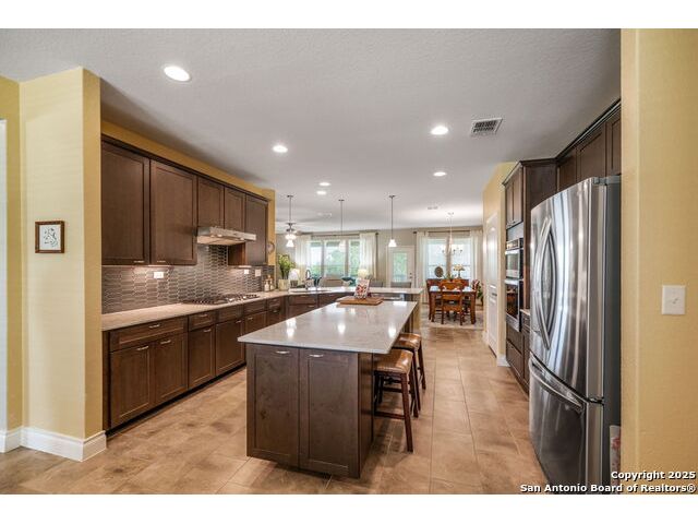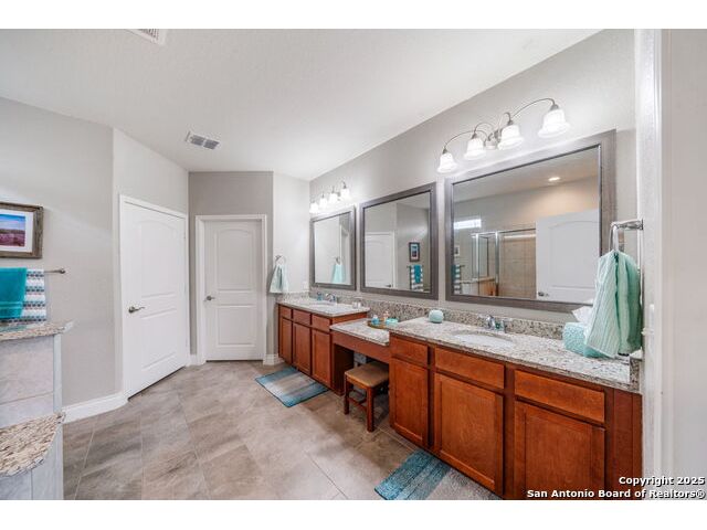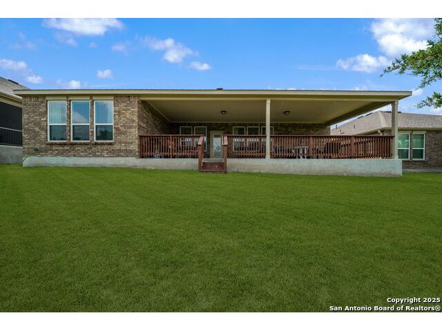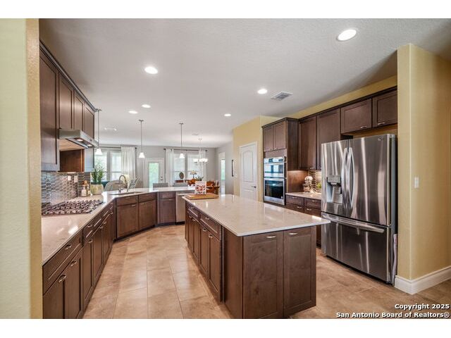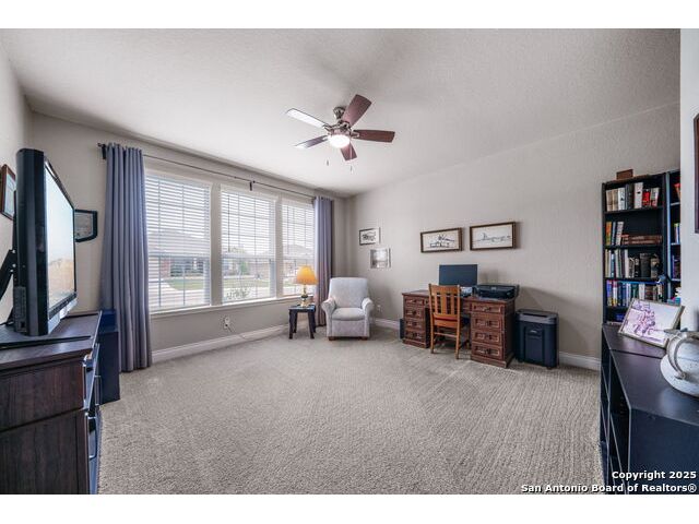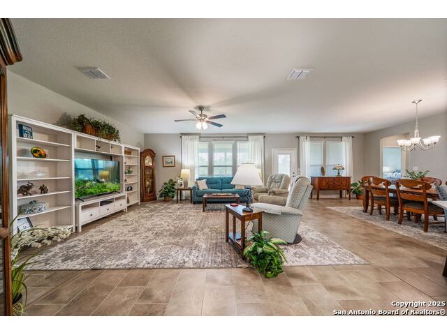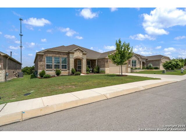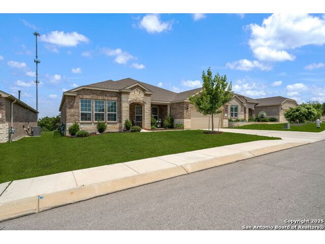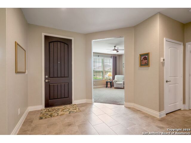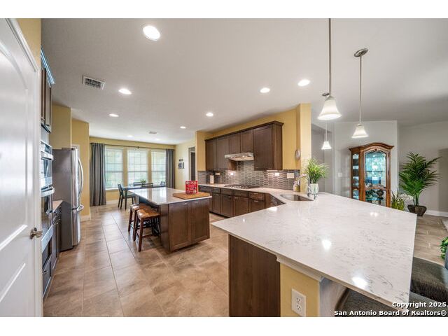 Resort-Style Living in San Antonio's Premier Active Adult Community! Welcome to Del Webb Hill Country Retreat, where comfort meets convenience in this meticulously maintained 2-bedroom, 2.5-bath single-story home, complete with an additional flex space-perfect for a home office, craft room, workout area, or guest retreat. Situated on a quiet cul-de-sac street with peaceful wooded greenspace views, this thoughtfully upgraded home is designed for easy, low-maintenance living. The open-concept layout features a welcoming chef-inspired kitchen equipped with quartz Silestone countertops, a stainless steel sink, 36" gas cooktop, built in oven & microwave, and a spacious walk-in pantry-ideal for both everyday living and entertaining. The serene primary suite offers a relaxing retreat with backyard views, a spa-like ensuite bath with walk-in shower, double vanity, and a generous walk-in closet. A private secondary bedroom with its own full bath ensures comfort for guests or family members. Step outside and unwind on the huge oversized covered patio, perfect for outdoor dining, morning coffee, or relaxing evenings surrounded by nature. The backyard features a blank slate for you to add your own touch backing to tranquil greenspace with mature trees for added privacy. As a resident of this 55+ active adult resort community, you'll have access to top-tier amenities: a 28,000 sq ft clubhouse, indoor and outdoor pools, fitness center, tennis and pickleball courts, walking trails, and a vibrant calendar of clubs and social activities tailored to retirees and active adults. Don't miss this rare opportunity to embrace the Hill Country lifestyle-schedule your private showing today!