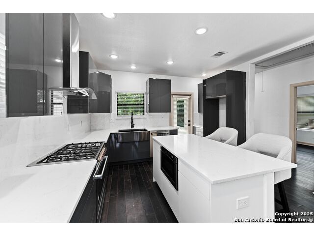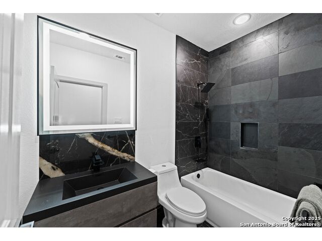 Take a look at this stunningly renovated home located just south of Southtown. This 3-bedroom, 2-bathroom beauty seamlessly combines modern comfort with elegant style, offering 1,260 square feet of meticulously designed living space. The open floor plan enhances the home's spaciousness, making it perfect for both entertaining and everyday living. Step into the expansive living area, where natural light pours in, highlighting the high-end finishes throughout. The chef-inspired kitchen is a true showstopper, featuring ample cabinetry, generous counter space, stainless steel appliances, a sleek island, and even a convenient pot filler. It flows effortlessly into the cozy living room, ideal for gathering with family and friends. Retreat to the luxurious primary suite, a serene haven designed for relaxation. The spa-like bath features a walk-in shower with a rain showerhead that surrounds a large soaking tub, while a floating double vanity adds to the sense of tranquility. Additional features include an indoor utility room complete with a sink, a security system for peace of mind, and plumbing prepped for a water softener. The expansive lot provides ample space for outdoor enjoyment and future enhancements, making this home the perfect canvas for creating your dream outdoor retreat. This rare gem offers the ideal blend of modern amenities and an unbeatable location, with easy access to the vibrant Southtown district and the heart of San Antonio.