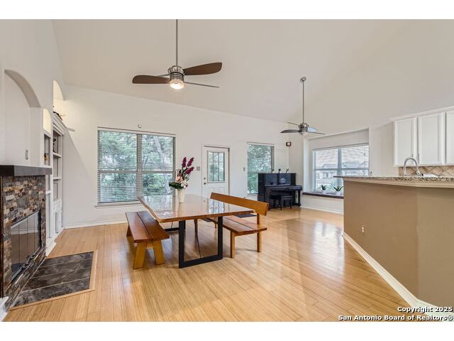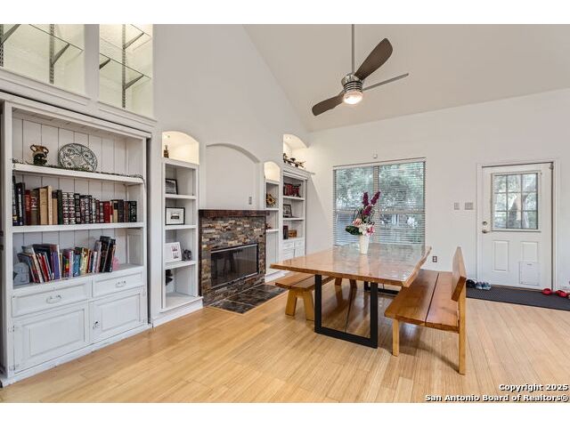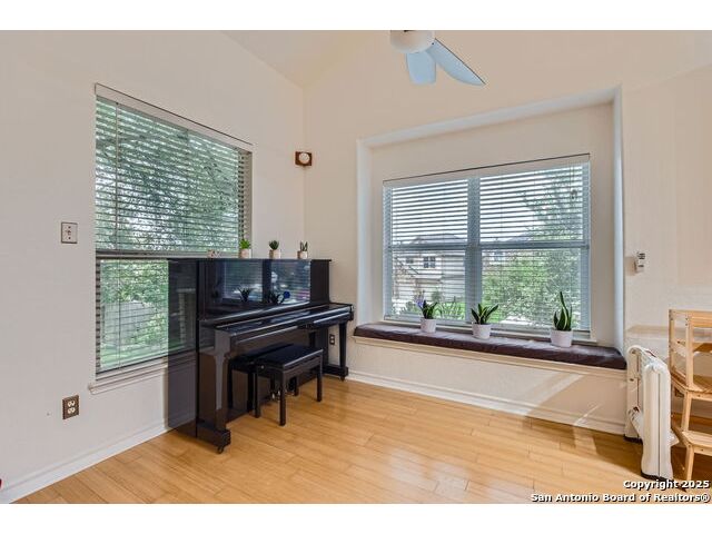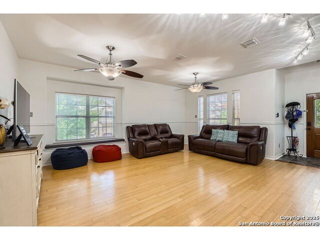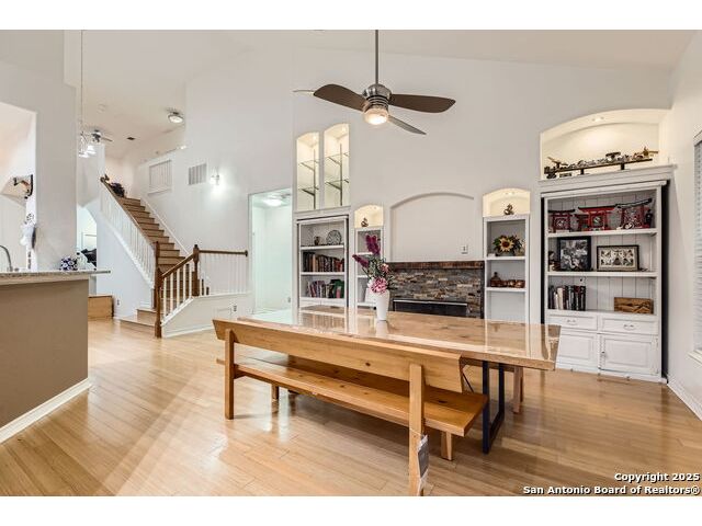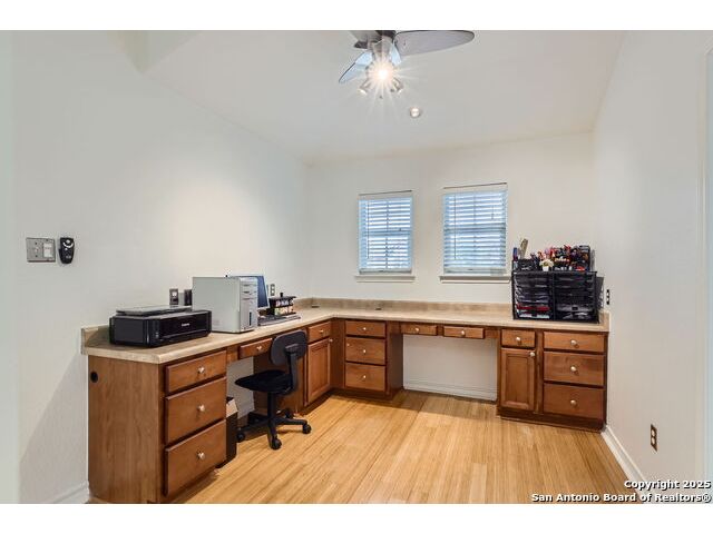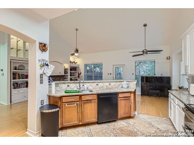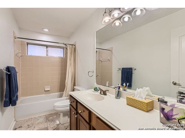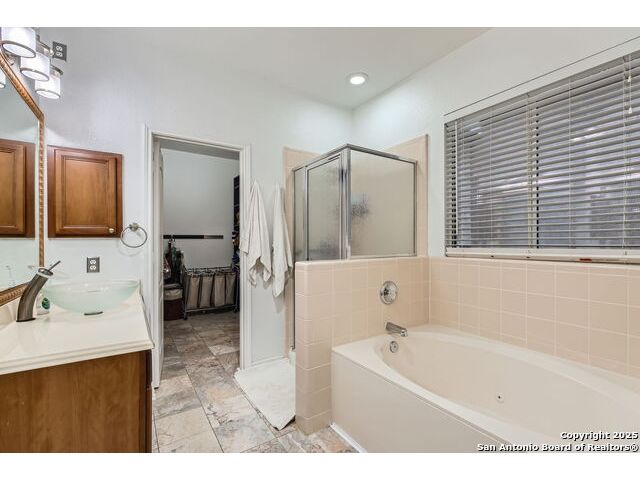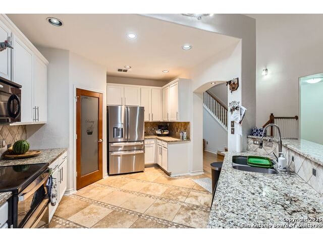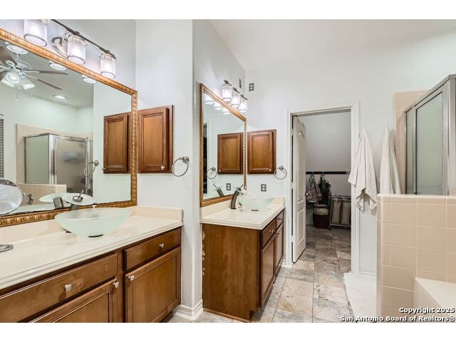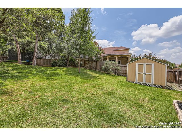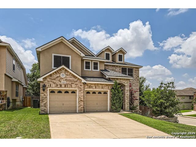 ** VA assumable loan at 6.125% (must be a veteran and qualify). ** This distinctive corner lot home in The Ridge at Lookout Canyon delivers both comfort and practicality with thoughtful upgrades throughout. The downstairs primary suite offers convenient single-level living with a spacious walk-in closet and a jetted tub for unwinding after long days. Bamboo wood flooring flows seamlessly through the main living areas and up the staircase, creating continuity while granite countertops in the kitchen provide both durability and style. The family room centers around a striking stone fireplace that anchors the space, while solar screens on the windows help manage Texas heat efficiently. Recent improvements include a new Class 4 hail resistant roof installed in 2024 and a new stove, plus the addition of a water softener and high-level HVAC filtration system that addresses both comfort and air quality concerns. Modern fixtures throughout the home reflect current design sensibilities without feeling trendy. Upstairs, the open loft-style gameroom creates flexible space for entertainment or relaxation, complemented by a dedicated study featuring a built-in desk for productivity. Three additional bedrooms and abundant storage solutions ensure this home accommodates both daily living and long-term organization needs. The exterior offers equal appeal with a large, grassy yard enclosed by privacy fencing, a full sprinkler system that maintains the landscape, and a practical storage shed tucked into the backyard. Location advantages include an elementary school just one mile away and close proximity to neighborhood amenities including the community park and pool. For qualified veterans, this property presents a unique opportunity through VA loan assumption, potentially offering significant financial advantages in today's market. The combination of recent updates, functional layout, and desirable location in The Ridge at Lookout Canyon creates a compelling package for buyers seeking both immediate comfort and future value.