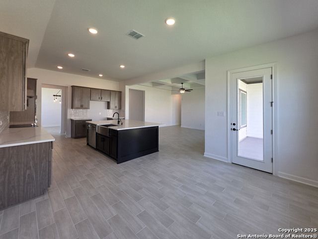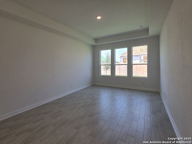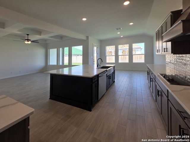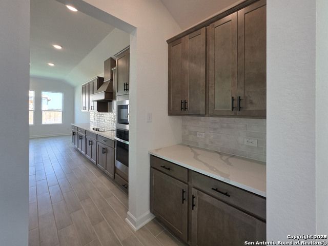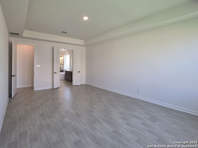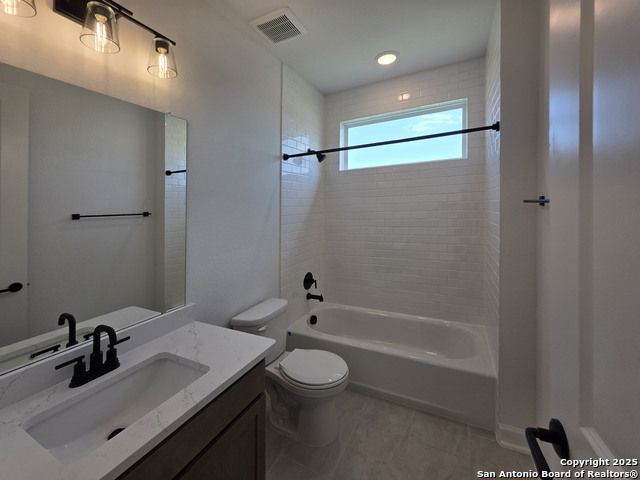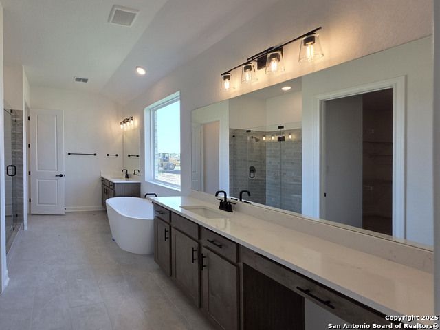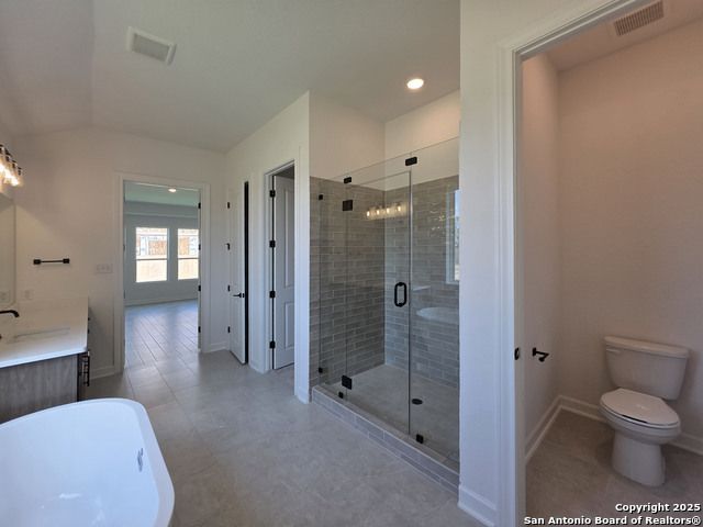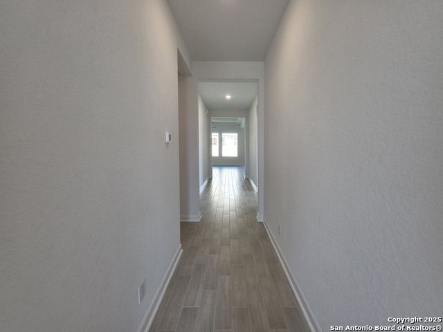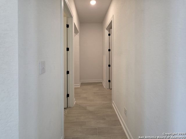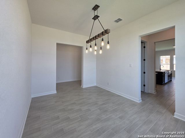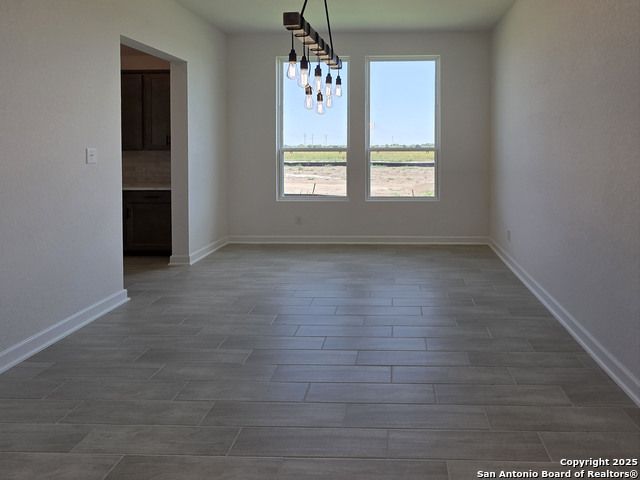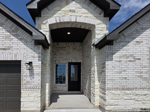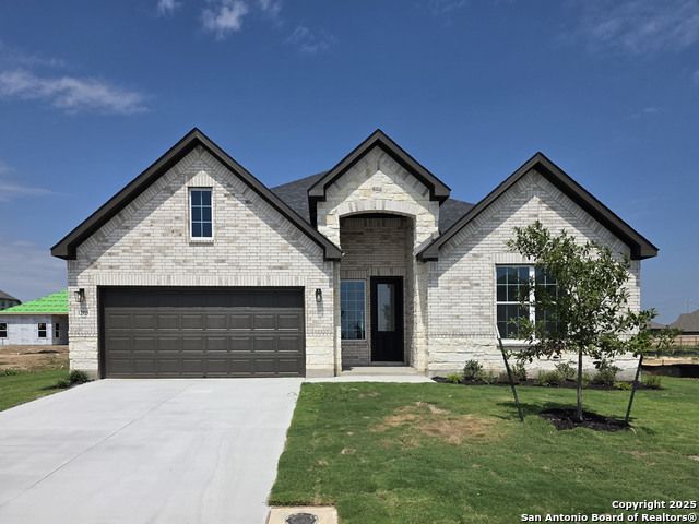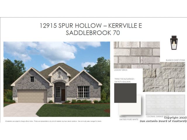 This charming one-story home is thoughtfully designed for both everyday living and entertaining. The gourmet kitchen, featuring quartz countertops, upgraded cabinetry, and a walk-in pantry, flows seamlessly into the spacious family room, where large windows fill the space with natural light and provide serene views of the backyard. A separate dining room creates the perfect setting for dinner parties, holiday gatherings, or casual meals with family and friends. The secluded primary suite serves as a private retreat, complete with an oversized shower, garden tub, double vanities, and a generous walk-in closet for ultimate relaxation. Two secondary bedrooms share a well-appointed bath, offering comfort for family or guests, while the covered patio and fully landscaped yard with a built-in sprinkler system invite effortless outdoor living, making every day enjoyable and stress-free. This home features design selections thoughtfully curated by our professional studio team. Each finish, from flooring and cabinetry to countertops and special touches, is chosen with care to create a cohesive and beautifully balanced look. Guided by timeless design principles and inspired by modern lifestyles, the result is a home that is both stylish and welcoming from the moment you step inside. This home is located in Saddlebrook Ranch, a master-planned community in the charming city of Schertz-named one of CNN/Money's top small towns. Enjoy easy access to I-35, premier shopping, dining, and Randolph Air Force Base. Planned amenities include a sparkling pool and playground, perfect for family fun. With the highly regarded Schertz-Cibolo-Universal City School District nearby, Saddlebrook Ranch offers the ideal blend of community, convenience, and small-town charm.