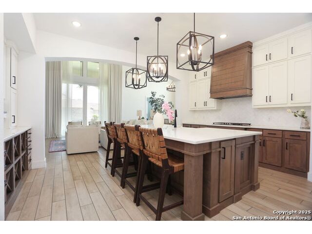 Presenting 129 Wildrose Hill Welcome to this exceptional custom home in the prestigious Regent Park community of Boerne, Texas-thoughtfully designed for both elevated entertaining and effortless everyday living. Tucked on a premium corner lot along a quiet cul-de-sac, this beautifully curated residence features 4 spacious bedrooms, 3.5 baths, and two flexible office or bonus rooms-one of which can easily serve as a private dining room or creative space. The gourmet kitchen is a standout, boasting a grand center island, built-in spacious coffee bar, walk-in pantry, high-end appliances, and luxury materials throughout. It opens seamlessly into the expansive living area, where soaring ceilings, natural light, and an overlooking loft create an open, airy flow. The primary suite is privately located on the main floor, offering a spa-like retreat with a soaking tub, glass-enclosed shower, double vanity, and an oversized walk-in closet thoughtfully designed for style and function. Upstairs offers room to relax and recharge with a media room, playroom/flex space, and spacious secondary bedrooms. Additional highlights include a mudroom area with a private laundry room, a tandem 3-car garage with space for a golf cart, and zoning to top-rated Boerne ISD schools. From its intentional layout to its carefully selected finishes, every corner of this home feels like it was designed by an artisan-crafted with the same precision and purpose as a perfectly built chair. A rare blend of warmth, elegance, and livability in one of Boerne's most sought-after communities.