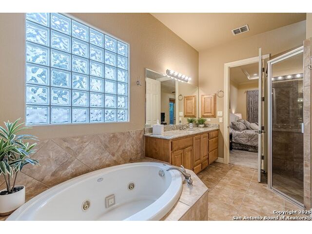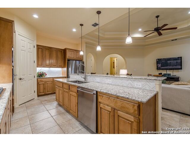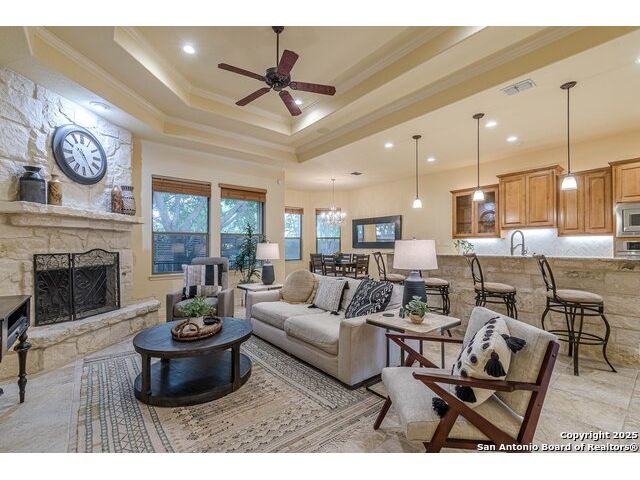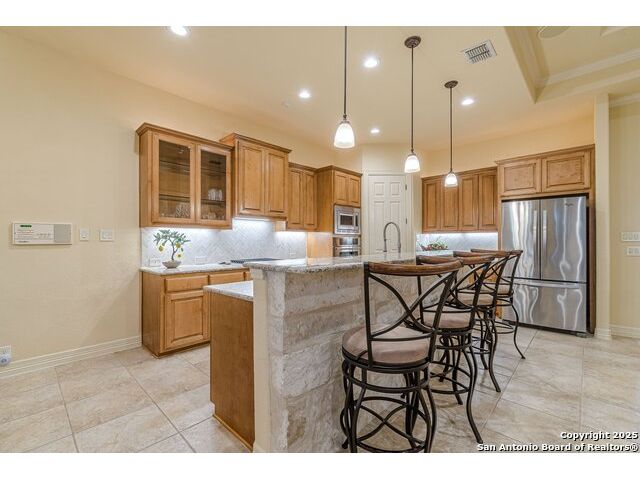 Discover a truly inviting Mediterranean-style haven in a prime Huebner Village location! This charming 3-bedroom, 2.5-bath home, encompassing a comfortable 2,040 sq. ft., is meticulously designed for modern living. Step inside and immediately experience the impressive sense of space, where an open floor plan seamlessly connects living areas, all illuminated by soaring high ceilings that create an expansive, airy atmosphere. The heart of this home is undoubtedly its kitchen, boasting custom cabinetry that offers both stunning aesthetics and abundant storage for all your culinary needs. Beyond the interior, you'll find a delightful, shady, low-maintenance yard - a serene retreat perfect for unwinding or entertaining without the fuss, leaving you more time to enjoy life. Living here means unparalleled convenience: you're just moments away from schools, vibrant shopping malls, diverse fine dining, and essential major highways like IH-10 and Loop 1604, ensuring effortless commutes and access to everything San Antonio has to offer. It's no wonder that home buyers who move into Huebner Village rarely want to leave; this home isn't just a place to live, it's a lifestyle waiting to be embraced.