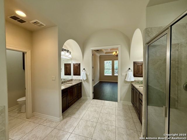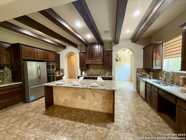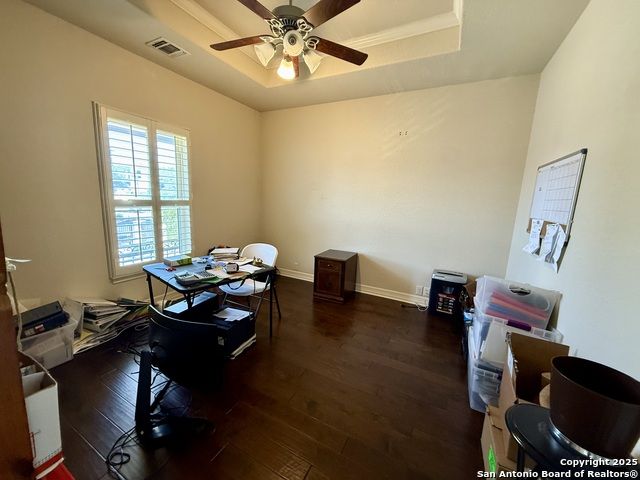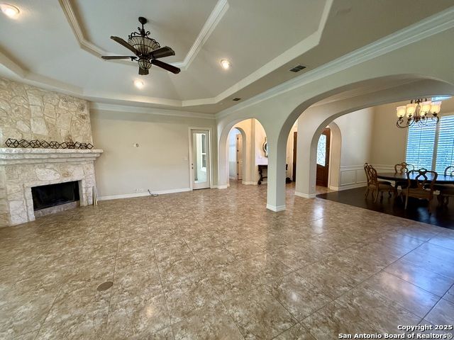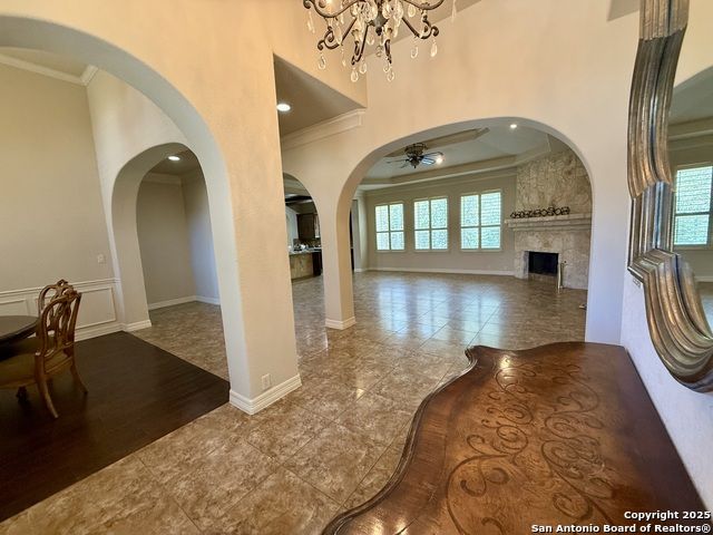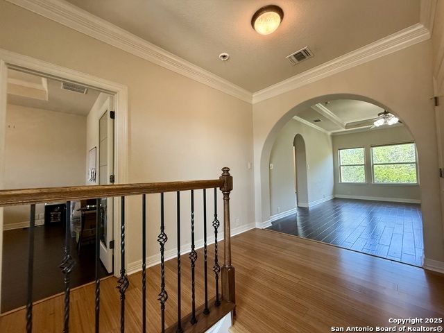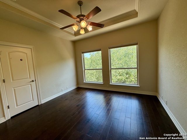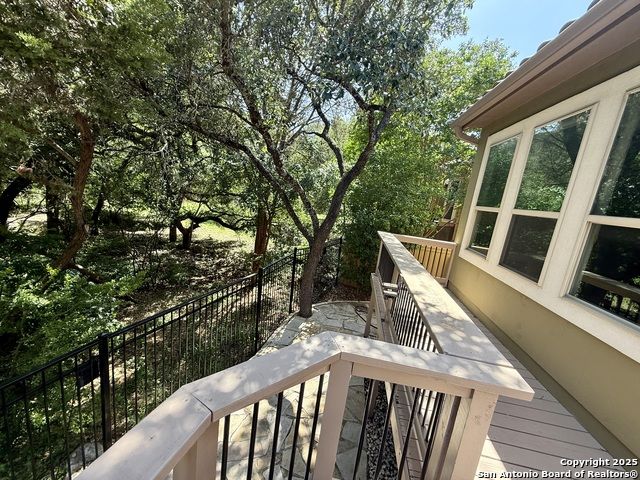 Stunning 4-Bedroom Home in The Gardens at Graystone - 3,455 Sq Ft! This beautifully maintained 3,455 sq ft home, built in 2013, offers 4 bedrooms (2 downstairs, 2 upstairs), a spacious game room, and a dedicated office. No carpet-featuring elegant wood, bamboo, and ceramic tile flooring throughout. The living area showcases a striking stone-surround fireplace, and the gourmet kitchen includes a large granite island, 42" staggered cabinets, custom ceiling beams, and plantation shutters. Enjoy breathtaking greenbelt views from the covered patio and wraparound deck. Additional highlights include a formal dining room, open floor plan, and high-end finishes throughout. Located in the desirable NEISD school district and conveniently close to shopping, dining, and major highways. HOA is only $800/year. Move-in ready and full of charm-this home is a must-see!