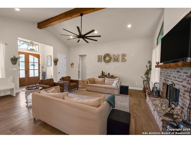 Discover the perfect blend of modern comfort and wide-open space in this beautifully designed 3-bedroom, 2.5-bath home set on 6.5 private acres. Built in 2022, this one-story residence features a thoughtfully crafted layout with an open-concept living, kitchen, and dining area-ideal for both everyday living and entertaining. Enjoy the seamless flow of the main living space, filled with natural light and accented by contemporary finishes. The spacious kitchen features premium Cafe' brand double oven, Cafe' refrigerator and a double dishwasher. There's ample counter space and storage, while the adjoining dining and living areas create a welcoming hub for family and friends. Huge pantry with its own door leading directly to the garage for easy unloading of groceries. Each of the three bedrooms offers comfort and privacy, with the primary suite featuring a well-appointed en-suite bath with two shower heads. The additional full and half bathrooms provide convenience for guests and family members alike. Outside, the expansive 6.5-acre lot offers endless possibilities-whether you're looking for room to roam, space for a garden, barn animals, or a peaceful setting to relax and unwind. Plenty of space for parking your RV with the convenience of a 50 amp connection nearby. Don't miss this opportunity to own a modern home with room to grow and breathe-schedule your private tour today!