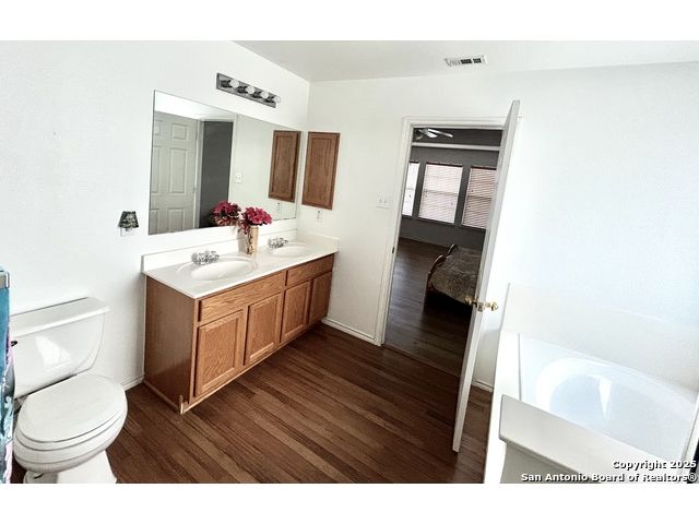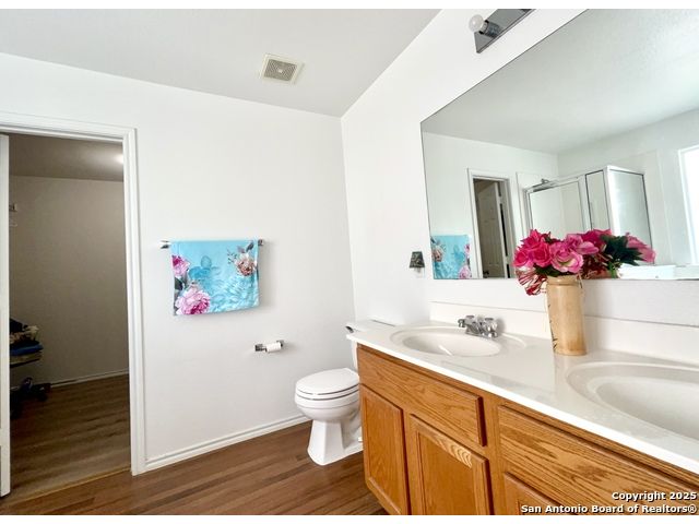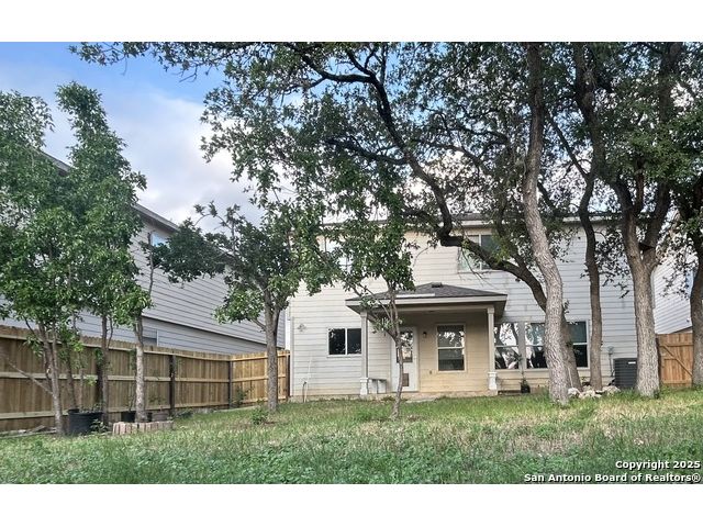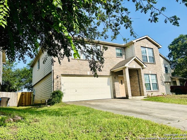 Great location, Open floor plan, Real oak staircase and Luxury vinyl plank flooring, Oversized master bedroom, oversized closets, Full bathrooms with double vanity, Covered patio, Mature oak and jujube trees. Welcome to this beautifully maintained two-story home located in the established River Mist Subdivision. This 3-bedroom, 2.5-bath home features an open floor plan with flexible living spaces perfect for both relaxation and entertaining. Stylish upgrades include high-end vinyl flooring throughout and real oak wood stairs that add warmth and character to the interior. The oversized primary suite offers a peaceful retreat with a large closet, double vanity, separate garden tub, and shower. The spacious secondary bedrooms are designed with comfort in mind and all rooms are equipped with ceiling fans. Step outside to a covered patio that opens to a large, fenced backyard filled with mature oak trees and exotic jujube trees, creating a tranquil outdoor escape. This prime location offers unbeatable convenience-just minutes from UTSA, USAA, the Medical Center, La Cantera, and The Rim.