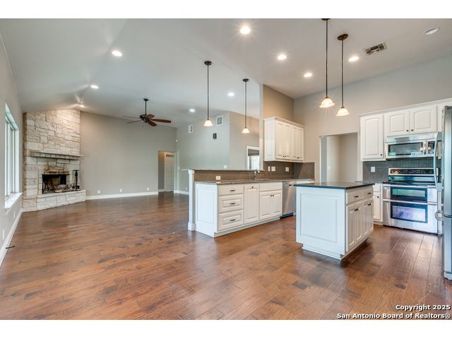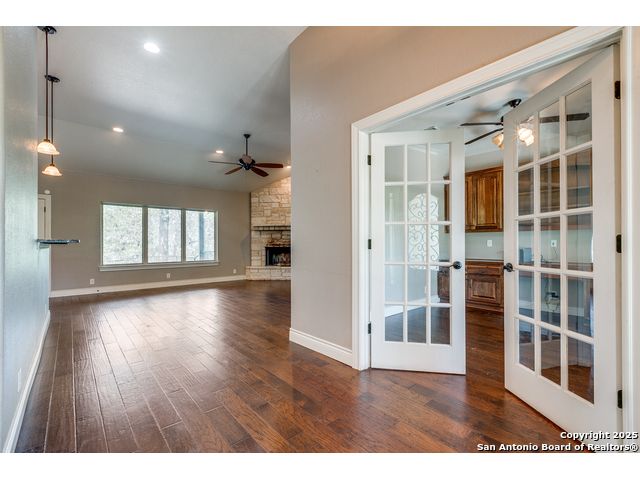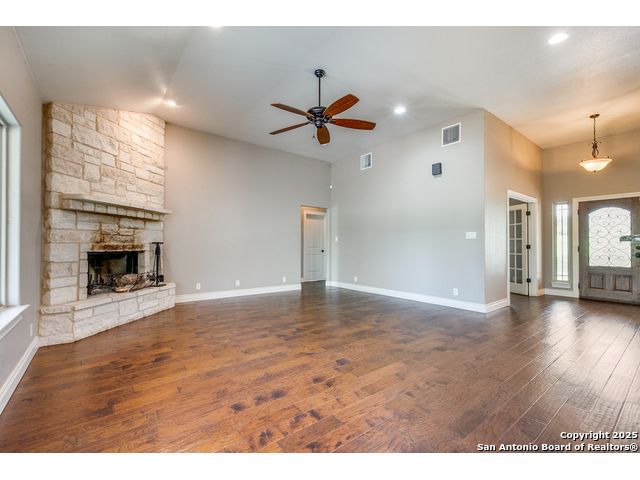 Back On Market - Buyer Financing Fell Through. Tucked beneath a canopy of mature oak trees on 1.31 acres in Legacy Ranch, this semi-custom home offers the perfect blend of space, comfort, and country charm. The lot slopes away from the road creating a secluded feel, with a lush backyard that flows down to a peaceful, tree-lined creek. A durable composite deck out back overlooking the creek provides the ideal spot to unwind and enjoy the peaceful setting. Just off the deck, a small fenced enclosure offers a secure space for pets to enjoy the outdoors without wandering off. Inside, the open layout connects two dining areas to include a breakfast bar with a central kitchen featuring soft-close cabinetry and all kitchen appliances included. Cozy up by the beautiful stone fireplace in the spacious living area, perfect for relaxing nights in. A dedicated office with built-in storage provides a quiet and functional space to work from home. The primary suite features direct access to the backyard along with separate vanities, a walk-in shower, separate soaking tub, and two walk-in closets making it the ideal private retreat. An oversized garage comfortably fits two large vehicles with room for additional storage, outdoor equipment, or recreational gear. Located just 15 minutes from the Calaveras Lake boat ramp! With no HOA and a sizable lot, there is plenty of space to make this one your own. Motivated seller! Don't miss this opportunity to make this rare Legacy Ranch property your own. This is a short sale, and the final price is subject to lender approval. Considering all offers, so schedule your tour today!