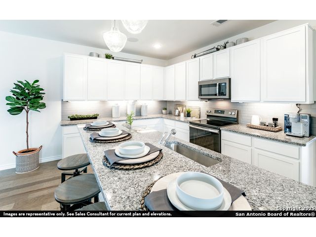 The unique Sabine plan boasts three bedrooms with walk-in closets, two bathrooms & a private study! 2 car garage (Standard Feature on every CastleRock home in HICKORY RIDGE. Master Plan community with Lazy river, Pool, Park and outdoor sports complex under construction. New Community Elementary school currently being built. 15 HERS RATING! Great location! 2.5 miles from Navarro ISD. Under 8 miles to HEB FLORESVILLE, Walmart FLORESVILLE and other local shopping. 15 min ride to City Base.