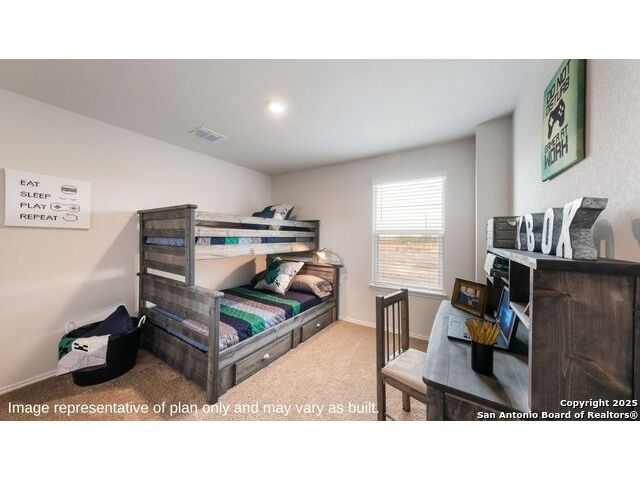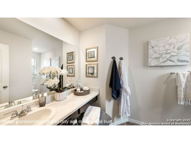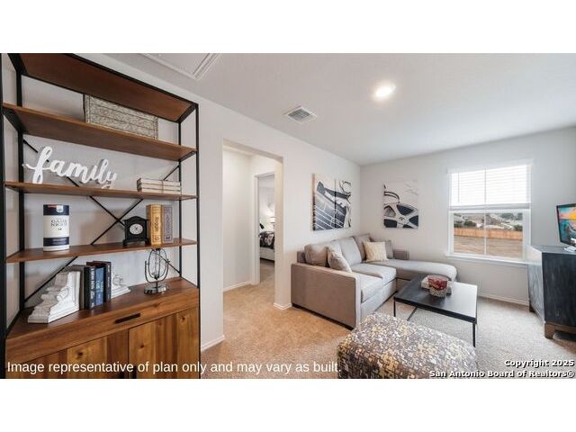 The Bowie plan is one of our two-story homes featured in our Redbird Ranch community in San Antonio, TX. This new home layout offers 3 classic front exteriors, 4 bedrooms, 2.5 bathrooms, a 1-car garage and 1839 square feet of comfortable living. An inviting front porch invites you to step inside The Bowie where you will find a foyer opening to a combined living room, dining room and kitchen area. You'll enjoy preparing meals in your modern kitchen with stainless steel appliances, quartz countertops and shaker style cabinets. Spend time together gathered around the large kitchen island with plenty of workspace and room for bar seating. A spacious loft or game room is located at the top of the stairs, providing plenty of room for countless game nights or movie nights. You will also find all bedrooms and a second full bathroom upstairs. Located toward the back of the home, your primary bedroom features an attractive attached bathroom with a combined bathtub and shower, a single vanity sink with a spacious quartz countertop and a walk-in closet. Head back downstairs and find an under-the-stairs storage closet, a spacious laundry room and a covered patio (per plan) located off the back of the home, perfect for relaxing and enjoying your fully landscaped and irrigated yard. Additional features of The Bowie include sheet vinyl at entry, downstairs living areas and wet areas and quartz countertops and shaker style cabinetry throughout the home. This home includes our HOME IS CONNECTED base package. Using one central hub that talks to all the devices in your home, you can control the lights, thermostat and locks, all from your cellular device.