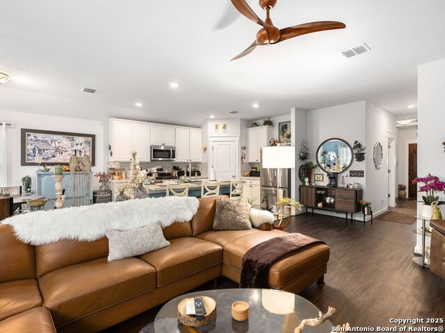 Welcome to 10744 Rosalina Loop, a well maintained, single story Brightland Homes residence , built in 2021 offering three bedrooms, two full baths and approximately 1,967 sq ft in the Paloma subdivision. The open concept kitchen features solid surface counters, a walk-in pantry, gas range, island and abundant cabinetry that flows to the dining and living areas. Home highlights include high ceilings, recessed lighting, ceramic tile and vinyl flooring, ceiling fans, an attached two car garage, covered patio with extended outdoor area, and a fenced private backyard. Community HOA provides select services for a low quarterly fee. Conveniently located with easy access to I-10 and Loop 1604 and minutes to shopping and dining corridors. Don't miss the opportunity to own this beautiful home in a great location!