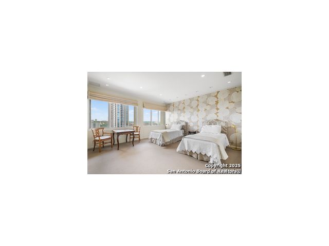 Perched high above the vibrant heart of Alamo Heights in San Antonio, this luxury high-rise condo offers a blend of modern sophistication, breathtaking views, and unmatched convenience. Step inside and you're greeted with floor-to-ceiling windows that flood the space with natural light and great views of the San Antonio Country Club golf course. The living space features sleek hardwood floors, cozy spaces, and incredible floor plan to take in the views from every room. The kitchen has a functional layout right off the main living room to make it easy for entertaining. The master suite is a tranquil retreat with a large walk-in closet, and a spa-inspired bathroom and a spacious sitting room. 3 generous size bedrooms with built in cabinets, custom closets, bookcases and storage. This condo is just a walk across the street to the San Antonio Country Club and quick access to city life.