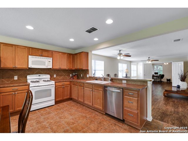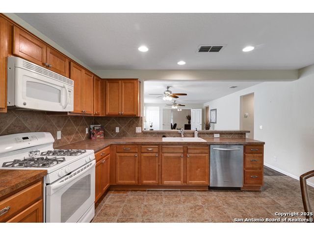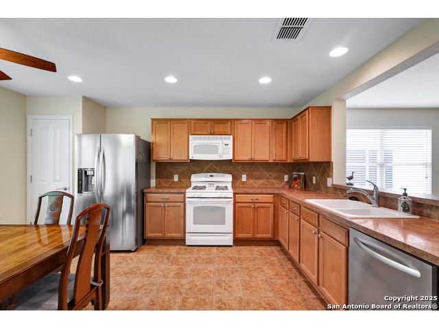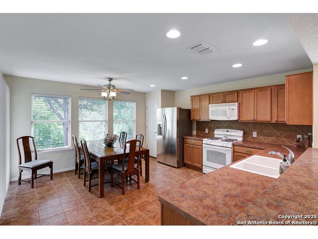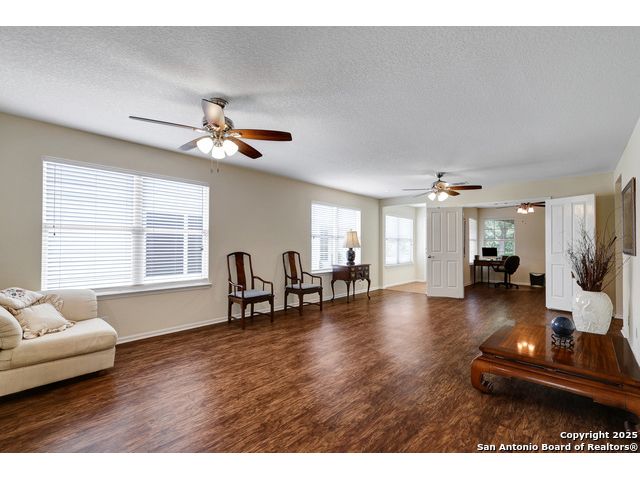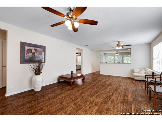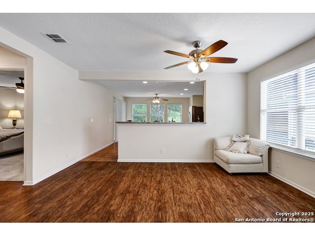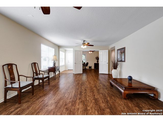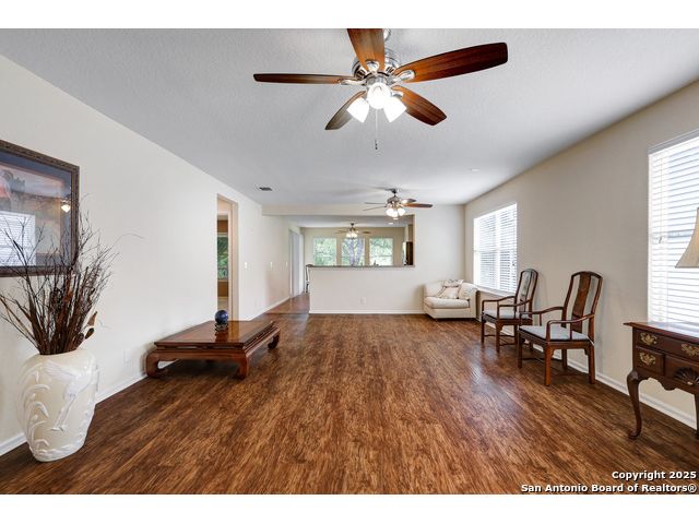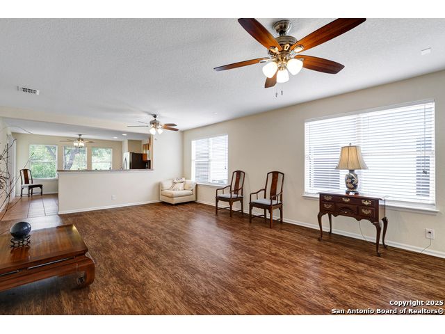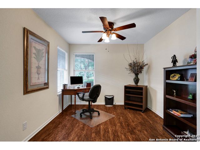 *UPDATED BEAUTIFUL COUNTERTOPS IN KITCHEN AND BATHS*Adorable home on private greenbelt that has covered front porch and covered back patio. You will enjoy the peaceful and serene setting that overlooks tree-filled greenbelt behind the home. Interior features include large open living/dining separating spacious kitchen by breakfast bar. Double doors separate private study from the living area. Split bedrooms. Wood look flooring in main areas and tiled wet areas. Only carpeting is in bedrooms. You won't want for closet space with walk-in closets in both bedrooms, plus extra cabinets in laundry room were added. Panty in kitchen - gas cooking. Buyers can enjoy a multitude of amenities, clubs, state of art gym and multiple pools and hot tubs (inside pool is being redone soon!) Plus, miles of nature trails throughout this lovely community. Hurry to make this one yours!