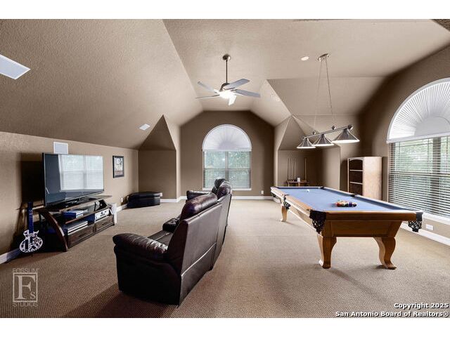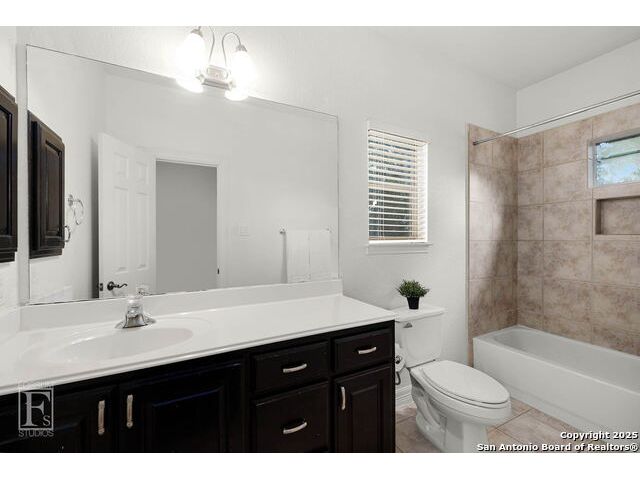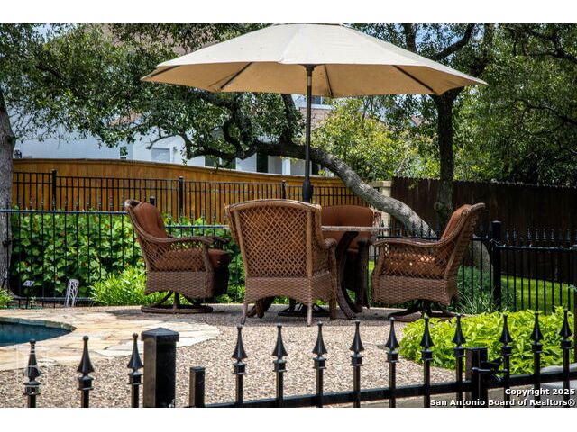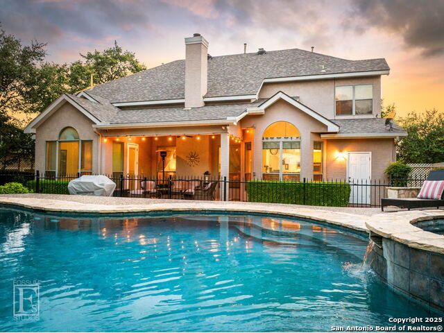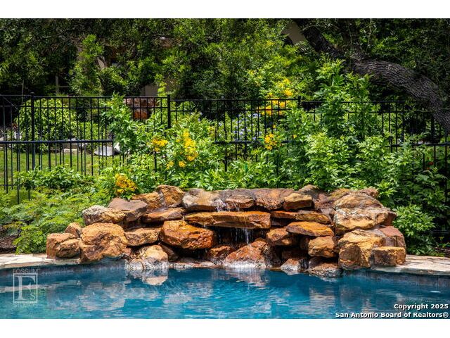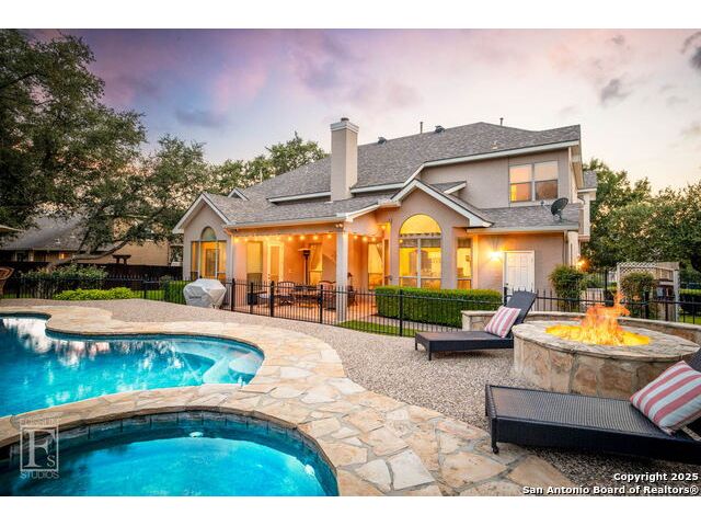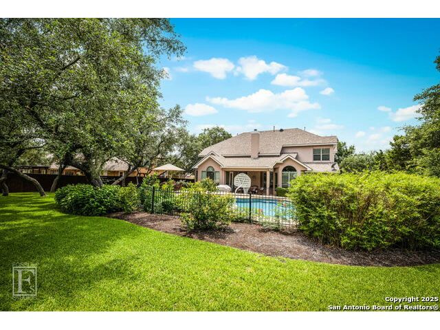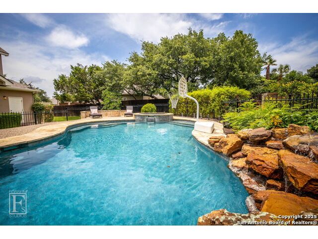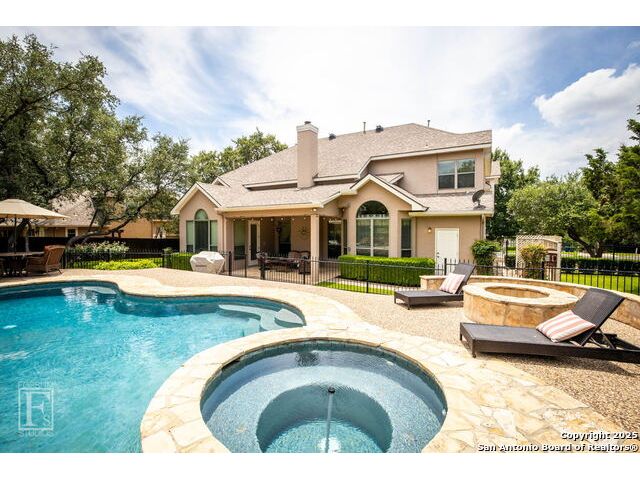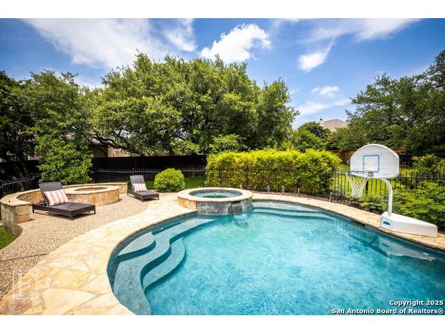4 bedroom 3 bath McNair Home in a prime North Central San Antonio Location is nestled on a beautifully treed lot, this home blends elegance, comfort, and thoughtful design-from the three-car side-entry garage to the abundance of natural light throughout, every detail has been carefully curated for elevated living. Step outside to your own private retreat-complete with a sparkling in-ground pool, relaxing hot tub, cascading waterfall, and a cozy firepit. Well maintained yard and landscaping make it the perfect backyard oasis. The covered patio and convenient poolside half-bath make outdoor entertaining effortless and enjoyable year-round. Inside, the chef's kitchen impresses with granite countertops, a gas cooktop, double ovens, and generous cabinetry-ideal for gatherings both large and small. Plantation shutters add timeless charm and privacy. The expansive primary suite is a sanctuary, featuring a sitting area, direct access to the backyard, and a spa-like bath with a jetted tub. Upstairs, enjoy versatile living with spacious secondary bedrooms, a large media room/ game room with a wet bar, and an oversized game closet-perfect for hosting and relaxing. This exceptional home truly has it all!