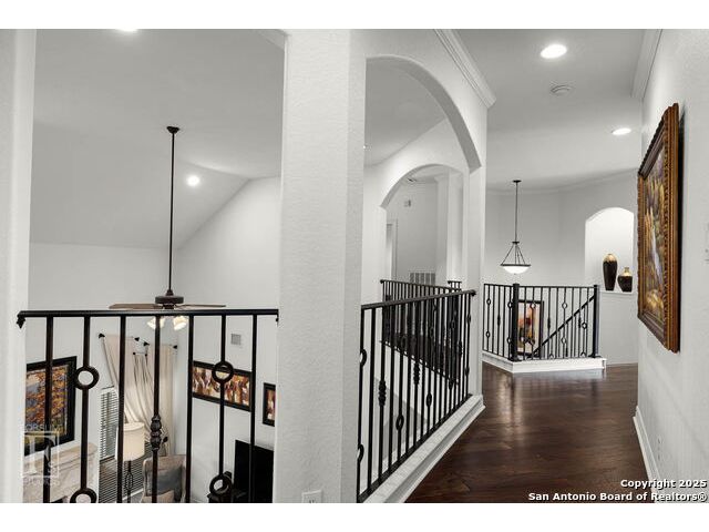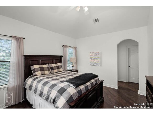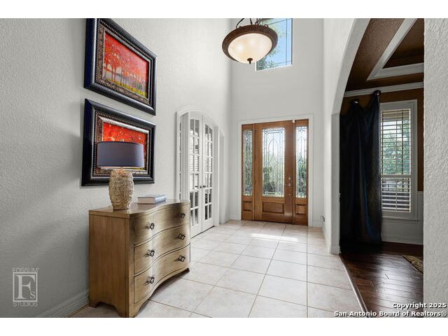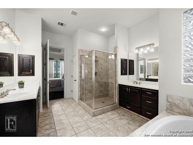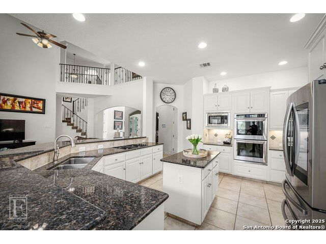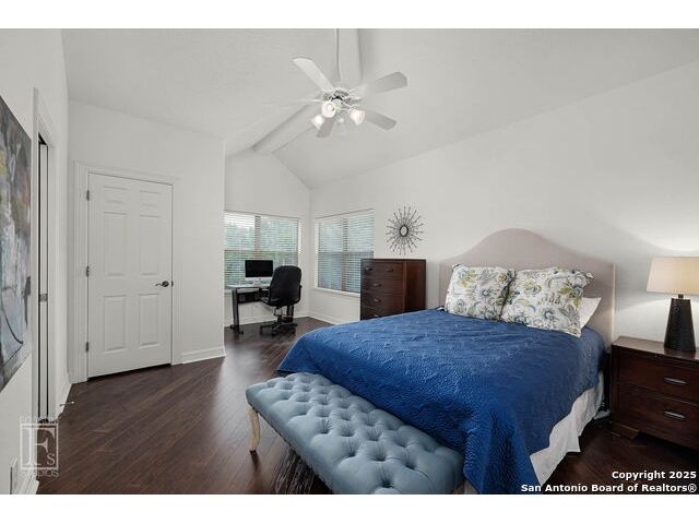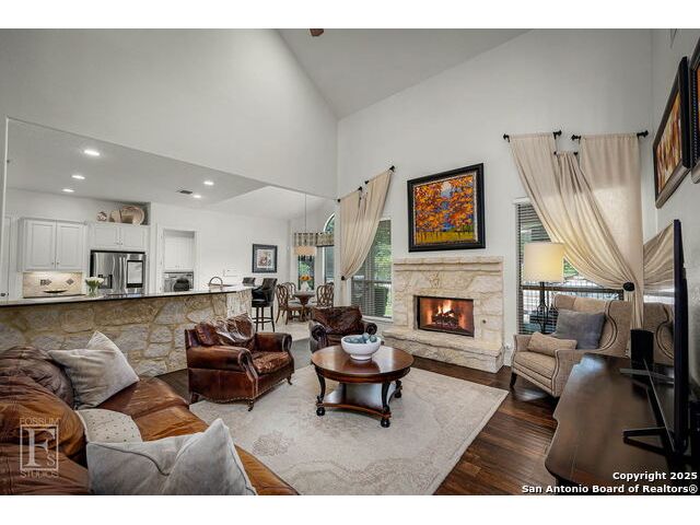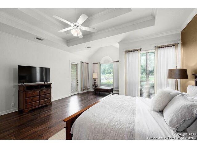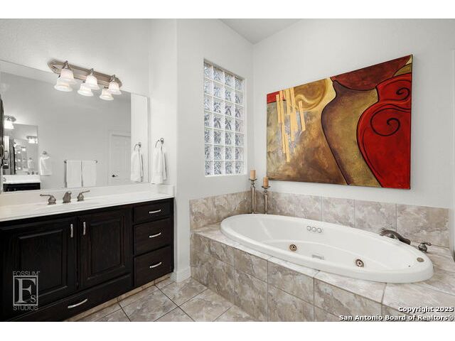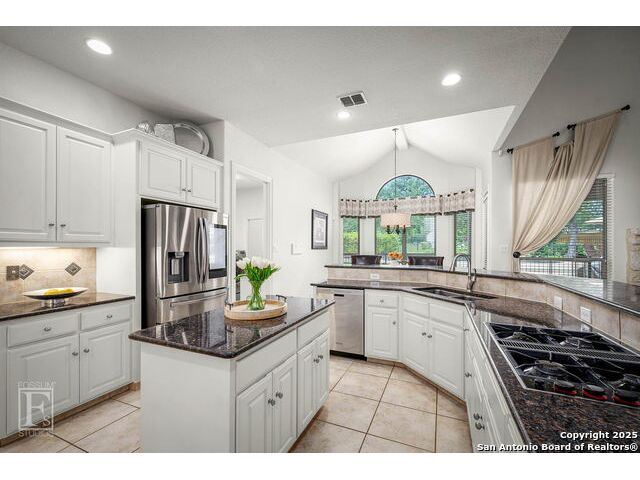 4 bedroom 3 bath McNair Home in a prime North Central San Antonio Location is nestled on a beautifully treed lot, this home blends elegance, comfort, and thoughtful design-from the three-car side-entry garage to the abundance of natural light throughout, every detail has been carefully curated for elevated living. Step outside to your own private retreat-complete with a sparkling in-ground pool, relaxing hot tub, cascading waterfall, and a cozy firepit. Well maintained yard and landscaping make it the perfect backyard oasis. The covered patio and convenient poolside half-bath make outdoor entertaining effortless and enjoyable year-round. Inside, the chef's kitchen impresses with granite countertops, a gas cooktop, double ovens, and generous cabinetry-ideal for gatherings both large and small. Plantation shutters add timeless charm and privacy. The expansive primary suite is a sanctuary, featuring a sitting area, direct access to the backyard, and a spa-like bath with a jetted tub. Upstairs, enjoy versatile living with spacious secondary bedrooms, a large media room/ game room with a wet bar, and an oversized game closet-perfect for hosting and relaxing. This exceptional home truly has it all!