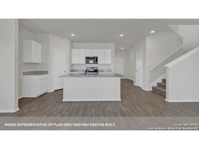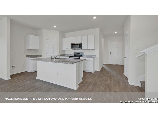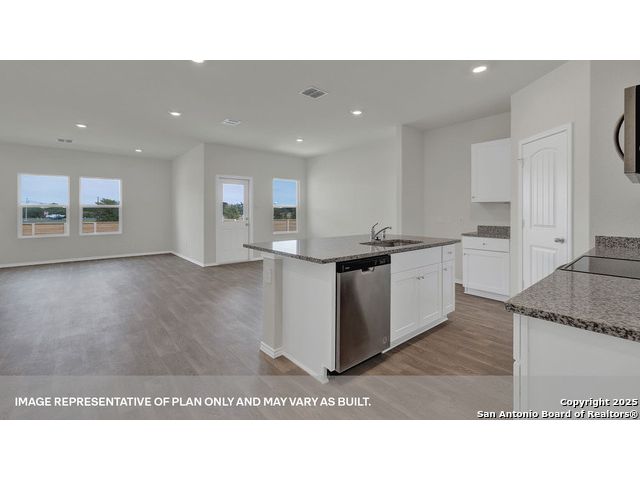 MOVE IN READY! CUL-DE-SAC LOT. Find all the space you need in our Midland floorplan. This two-story home includes 4 bedrooms, 3 bathrooms, a loft and 2 car garage within its 2,170 square feet of living space. Step inside this home and walk through the foyer to the kitchen, dining, and family room. This open concept space is perfect for hosting and entertaining, as well as everyday living. The L-shaped kitchen features an island with undermount sink, granite countertops, 4" backsplash, a pantry closet, 36" upper cabinets, and stainless-steel appliances, including a gas range. The first floor includes 2 bedrooms and 2 full bathrooms. The primary bedroom is at the back of the home, off the family room, and includes an attached bathroom. This relaxing bathroom space features a walk-in shower, cultured marble vanity with dual sinks, private toilet area with a door, and a walk-in closet. At the front of the home is a secondary bedroom, bathroom, and utility room. The secondary bathrooms include a shower/tub combination. Ascend the stairs to the loft, an extra living space that could be used as an office or play area for the kids. Two additional bedrooms and a full bathroom are upstairs, allowing amble space for the whole family. The Midland includes vinyl flooring throughout the common areas of the home, and carpet in the bedrooms. A covered back patio is also included in the Midland plan. All our new homes feature Bermuda sod, an irrigation system in the front and back yard, and a 6' privacy fence around the back yard. This home comes with our America's Smart Home base package, which includes the Front Door Bell Deadbolt Lock, Home Hub, Thermostat, and Deako Smart Switches.