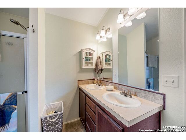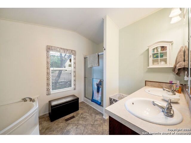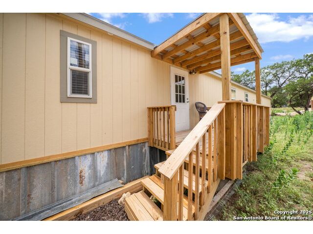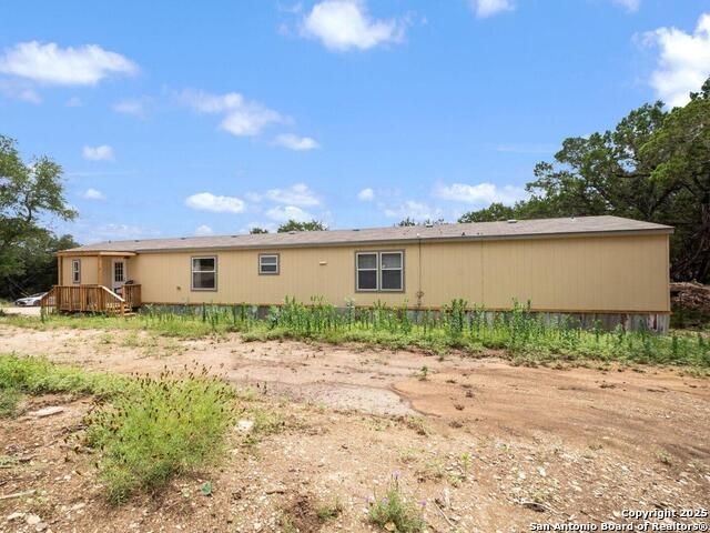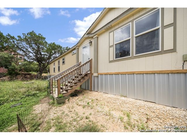 Welcome to this charming singlewide mobile home nestled on over 0.3 acres, spread across three lots. Step inside to discover textured walls, high ceilings, and thoughtful upgrades throughout. The spacious primary bedroom offers a peaceful retreat with a private ensuite full bathroom and a large walk-in closet. Designed with a split floor plan, this home provides added privacy by separating the primary suite from the second and third bedrooms. Make laundry a breeze by utilizing the separate designated laundry room for added organization. Enjoy the serenity of country roads and the charm of small-town living, all while being less than 10 miles from downtown Bandera. The Lake Medina Shores HOA enhances your lifestyle with access to a neighborhood pool and Medina Lake. Whether you're looking for an investment property or a full-time residence, this gem checks all the boxes. Don't miss your chance to see it today!