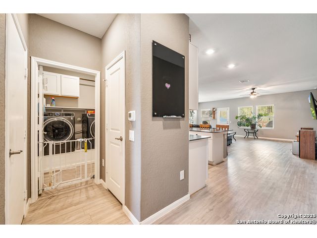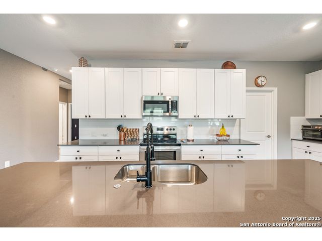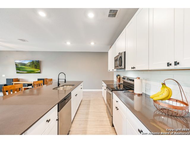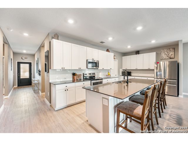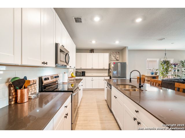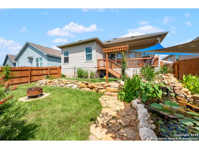 Discover your dream home in the highly desirable Mission del Lago neighborhood! This beautiful 3-bedroom, 2-bathroom residence offers an open floor plan and an array of thoughtful upgrades. Enjoy custom shelving and cabinetry in the master closet and laundry room, enhanced plumbing and lighting fixtures, and a charming stained porch and fence. Recent additions include new gutters and a professionally landscaped backyard featuring a delightful fish pond with three koi and two goldfish. Best of all, this property boasts private access to the paved trail along the Mitchell Lake Audubon Center, a renowned bird preserve.