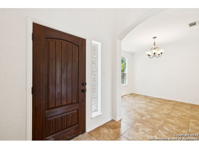 Welcome to 3213 Pencil Cholla-a spacious and move-in ready 4-bedroom, 2.5-bath home tucked at the end of a quiet cul-de-sac in the desirable Sedona community. Step inside to discover a flexible floor plan designed for both everyday living and entertaining. A separate dining room sets the stage for special gatherings, while the expansive living area is bathed in natural light. Upstairs, a generous loft offers endless possibilities-use it as a game room, media space, or home office. The primary suite, located downstairs for added privacy, features a spa-like ensuite with double vanity, soaking tub, and separate shower. Upstairs, three roomy bedrooms share a full bath, perfect for family or guests. The heart of the home is the kitchen, complete with granite countertops, gas range, and abundant cabinetry-all opening seamlessly to the living area. Outside, a fenced backyard with a patio slab awaits your personal touch. Best of all, incredible community amenities are right across the street-enjoy a sparkling pool, playground, clubhouse, outdoor amphitheater, and scenic walking trails. With quick access to Loop 1604, Randolph Air Force Base, shopping, and dining, this home truly offers the perfect blend of space, comfort, and convenience.