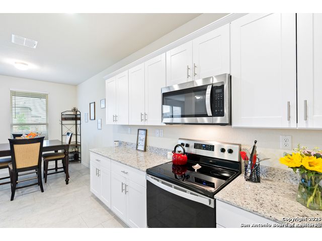 Welcome to your spacious sanctuary in the vibrant Cinco Lakes community! This bright and modern 3-bedroom, 2.5-bath home was built in 2023 and is move-in ready. With 1,816 square feet of living space, a light-filled open floor plan, upstairs loft, and a covered patio perfect for outdoor entertaining, this two-story Centex-built home is designed for everyday ease and future flexibility. Appliances are already included - stove, refrigerator, washer, dryer, and dishwasher - making your move effortless and worry-free. Enjoy peace of mind with a 7-year structural warranty still in place, and feel confident knowing this home offers rare value in today's market - something that may pay off more than you'd expect over time. Located in a fast-growing neighborhood just minutes from Lackland AFB and Seaworld San Antonio, this property is a smart choice for military families and first-time buyers. The Cinco Lakes community offers peaceful, country-style living with city convenience, plus neighborhood perks like a pool and playground. This is your chance to own a clean, modern home with energy-efficient features, thoughtful upgrades, and built-in potential in a booming location. Come experience the value, the space, and the opportunity - Cinco Lakes is calling.