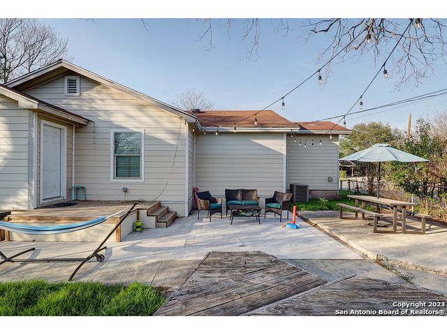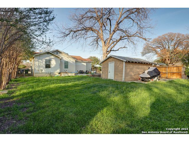 WELCOME HOME! Grand entrance of columns to welcome all guest to this beautifully maintained 3 bedroom home. Open floor plan as you enter home with generous kitchen and large kitchen island for prepping, storage, and entertaining. Large master and secondary rooms with no carpet. Large backyard with deck and mature trees to enjoy the evenings. Detached garage space. Minutes away from Olmos Park and Alamo Quarry. Conveniently located to major highways, shopping, food, and entertainment. Price adjustment