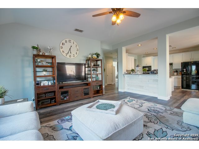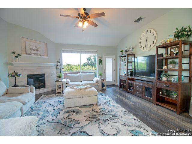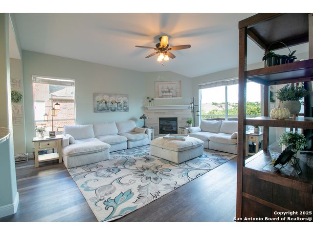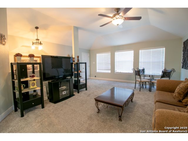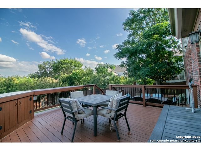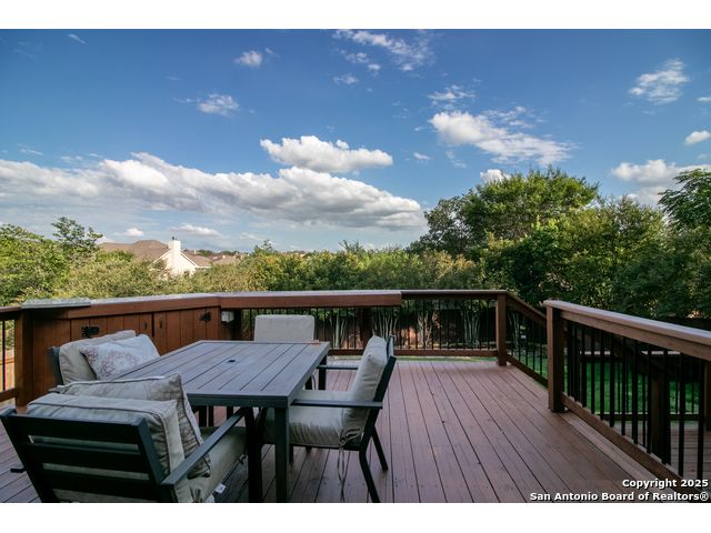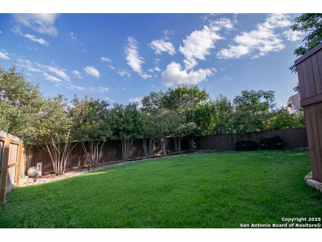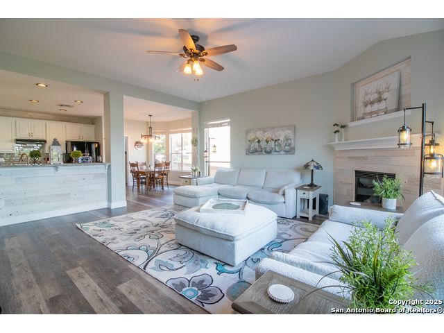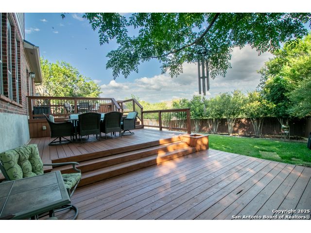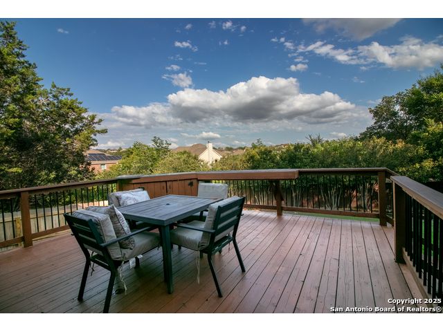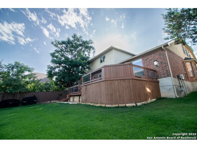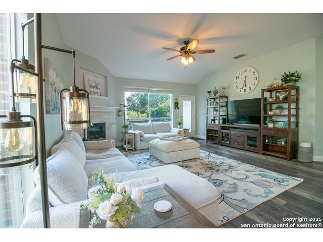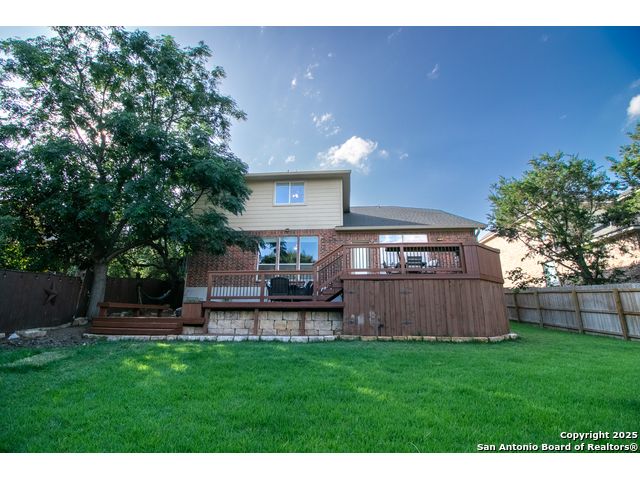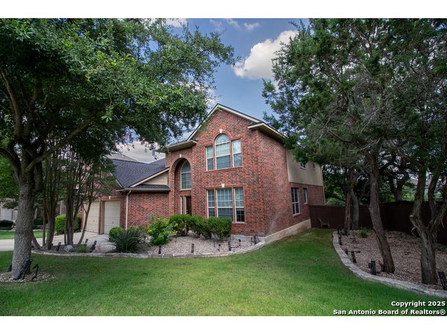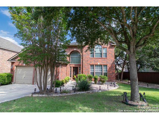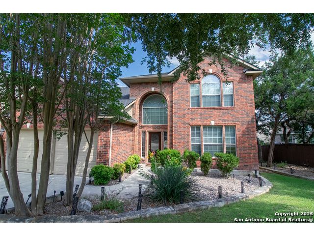 Priced 75K under 2025 BCAD assessment! Beautifully maintained move in ready 4 bed 2.5 bath brick home in the desirable Ventanas subdivision in the Cibolo Canyons development! One of the best priced per square foot home in the subdivision! This 2 story brick home boasts one of the largest lots at .216 acres in the neighborhood w/maintained & mature landscaping! You are greeted by two story ceilings in the entry & luxury vinyl plank flooring. The formal living & dining have crown molding and plenty of natural lighting. Recent interior painting throughout! The family room features a corner set gas fire place, wonderful views of the backyard & opens to the kitchen. The kitchen features granite countertops, white cabinetry, subway backsplash, built-in oven & microwave and coastal wood trim! Pantry has custom mahogany banded pantry shelving with solid milled mahogany supports. The first floor primary suite has great views of the backyard, walk-in shower, garden tub, granite countertops, walk-in closet & separate vanities. Upgraded carpeting (2023) in primary & upstairs w/Tempur-Pedic base padding & sound dampening features! The second level features a huge third living space, 3 great sized secondary bedrooms, jack-n-jill bathroom w/granite countertops and 2 attic storage spaces. All walk-in closets, linen & coat closet have custom mahogany banded poplar shelving! Impressive 5" baseboards! The backyard is a dream: 800 square feet multi-level cedar deck (sanded & stained June 2025) w/stunning views, manicured lawn & landscaping, tons of privacy and tuned-up sprinkler system! 238 square feet of impervious cover available! Additional updates include: Roof (May 2025), water heater (2024), HVAC (2023), powder room updated (2023), bathroom sinks, faucets & towel racks, matching lighting w/dimmable switches. One of a kind subdivision with TWO clubhouses, TWO pools, lazy river, playground, trails, two gyms! Highly rated schools in NEISD! Easy access to 281!