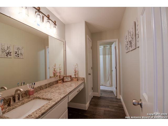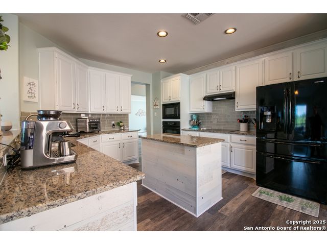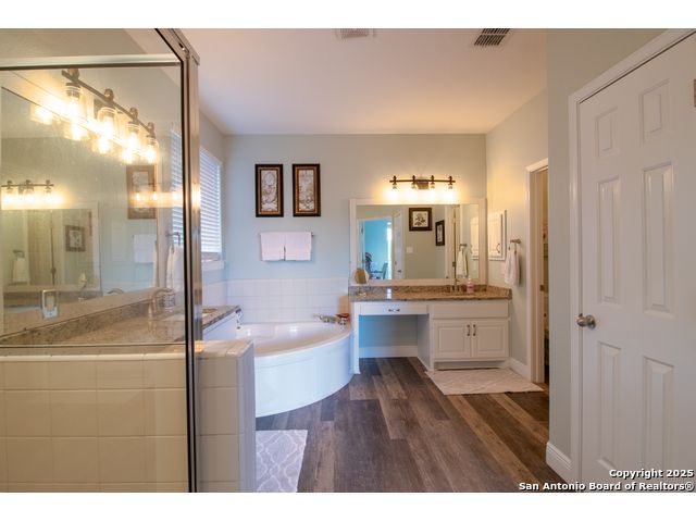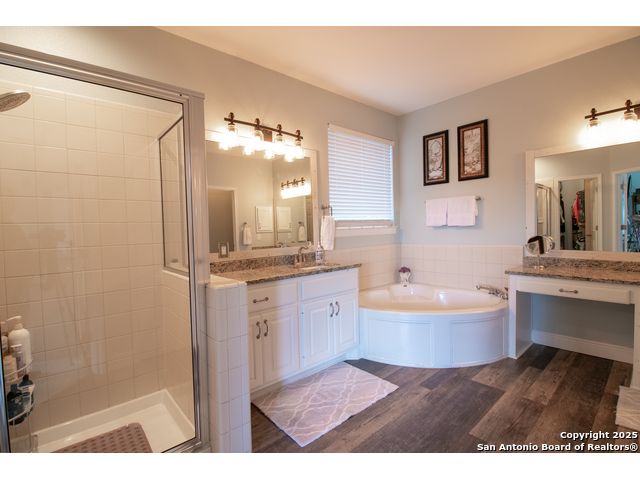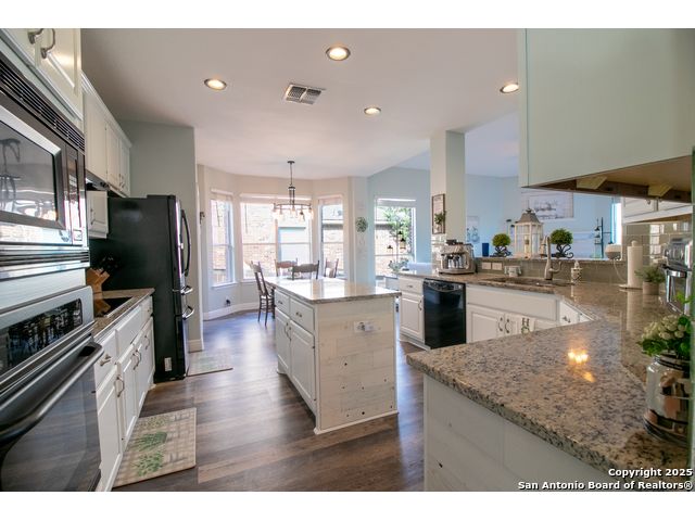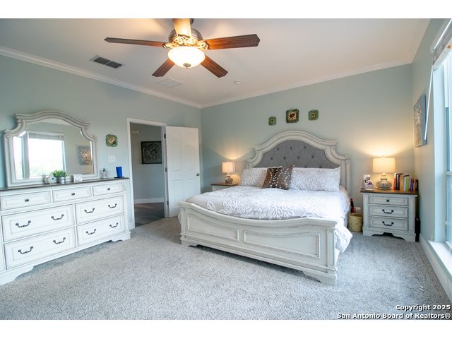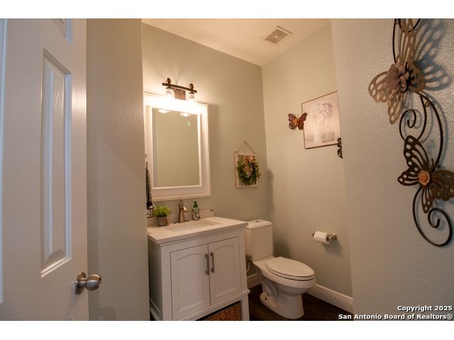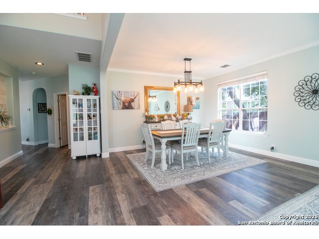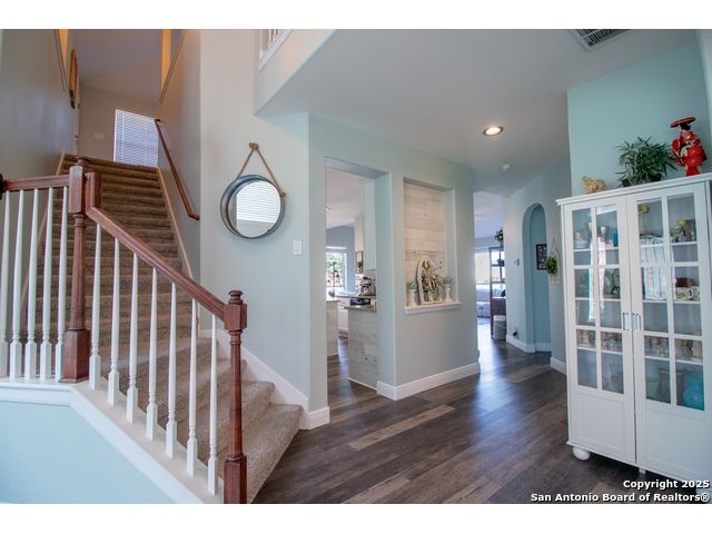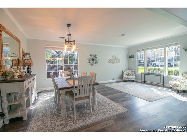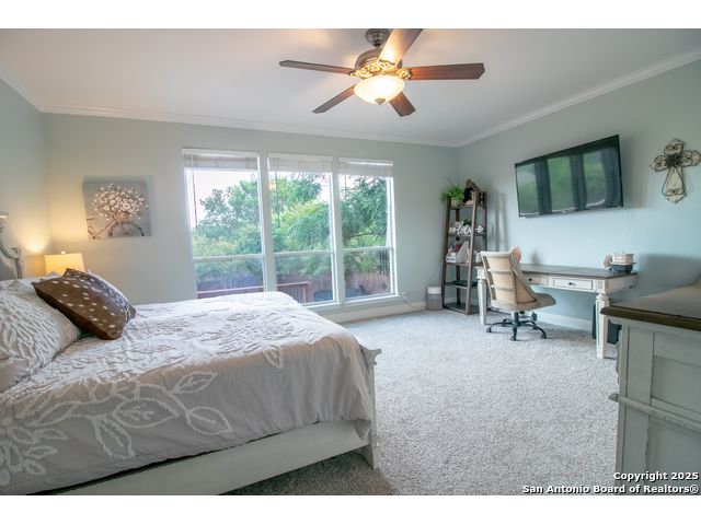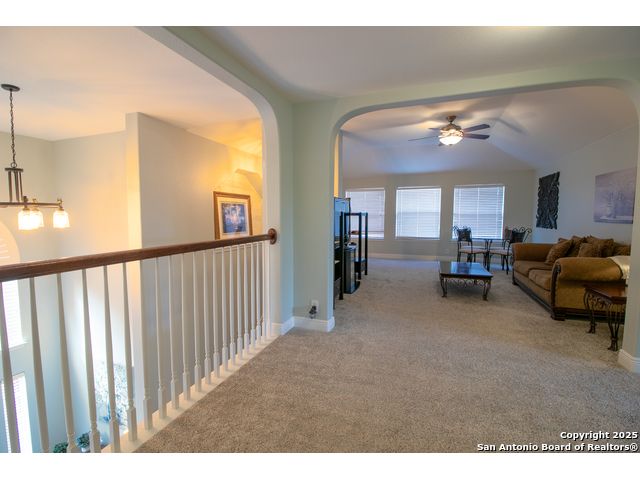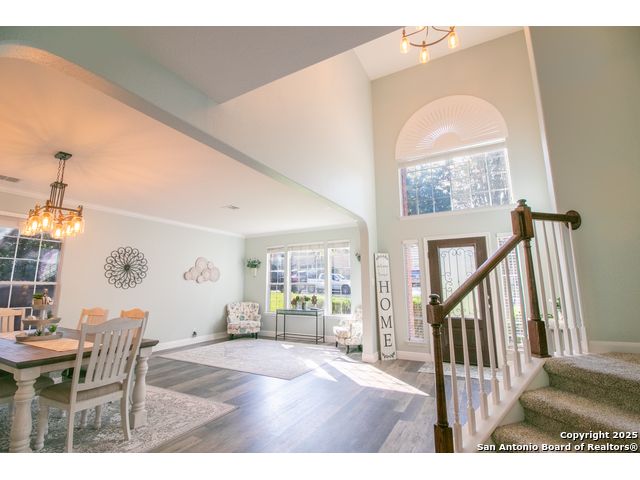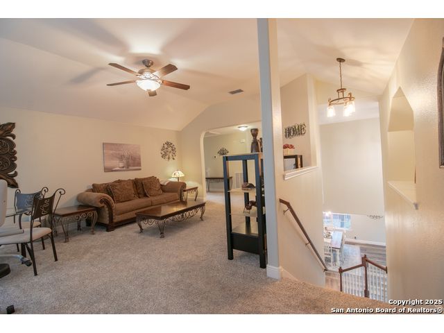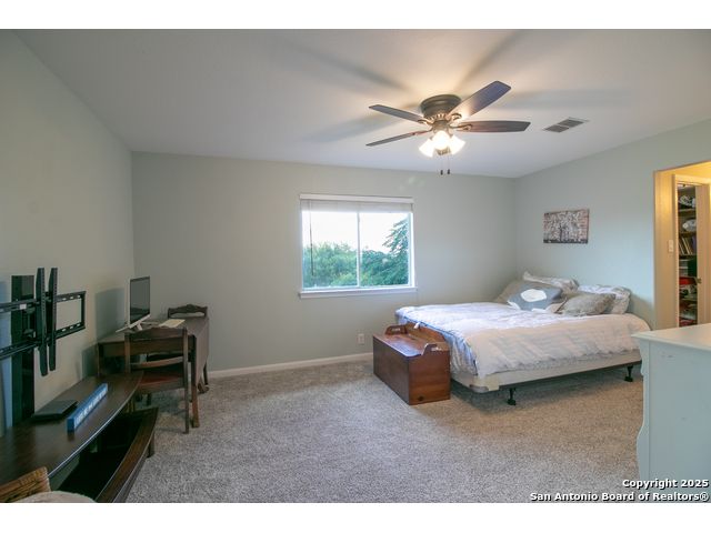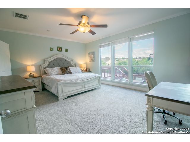 Priced 75K under 2025 BCAD assessment! Beautifully maintained move in ready 4 bed 2.5 bath brick home in the desirable Ventanas subdivision in the Cibolo Canyons development! One of the best priced per square foot home in the subdivision! This 2 story brick home boasts one of the largest lots at .216 acres in the neighborhood w/maintained & mature landscaping! You are greeted by two story ceilings in the entry & luxury vinyl plank flooring. The formal living & dining have crown molding and plenty of natural lighting. Recent interior painting throughout! The family room features a corner set gas fire place, wonderful views of the backyard & opens to the kitchen. The kitchen features granite countertops, white cabinetry, subway backsplash, built-in oven & microwave and coastal wood trim! Pantry has custom mahogany banded pantry shelving with solid milled mahogany supports. The first floor primary suite has great views of the backyard, walk-in shower, garden tub, granite countertops, walk-in closet & separate vanities. Upgraded carpeting (2023) in primary & upstairs w/Tempur-Pedic base padding & sound dampening features! The second level features a huge third living space, 3 great sized secondary bedrooms, jack-n-jill bathroom w/granite countertops and 2 attic storage spaces. All walk-in closets, linen & coat closet have custom mahogany banded poplar shelving! Impressive 5" baseboards! The backyard is a dream: 800 square feet multi-level cedar deck (sanded & stained June 2025) w/stunning views, manicured lawn & landscaping, tons of privacy and tuned-up sprinkler system! 238 square feet of impervious cover available! Additional updates include: Roof (May 2025), water heater (2024), HVAC (2023), powder room updated (2023), bathroom sinks, faucets & towel racks, matching lighting w/dimmable switches. One of a kind subdivision with TWO clubhouses, TWO pools, lazy river, playground, trails, two gyms! Highly rated schools in NEISD! Easy access to 281!