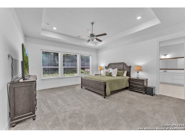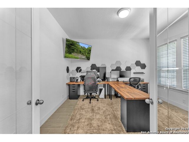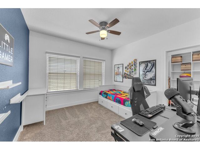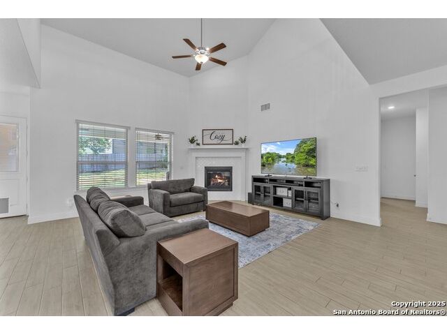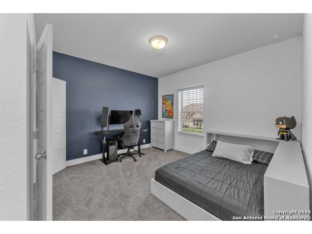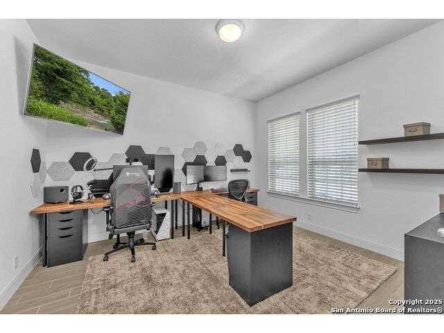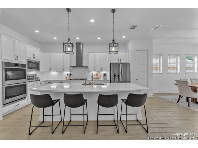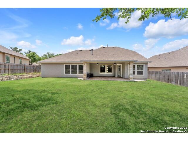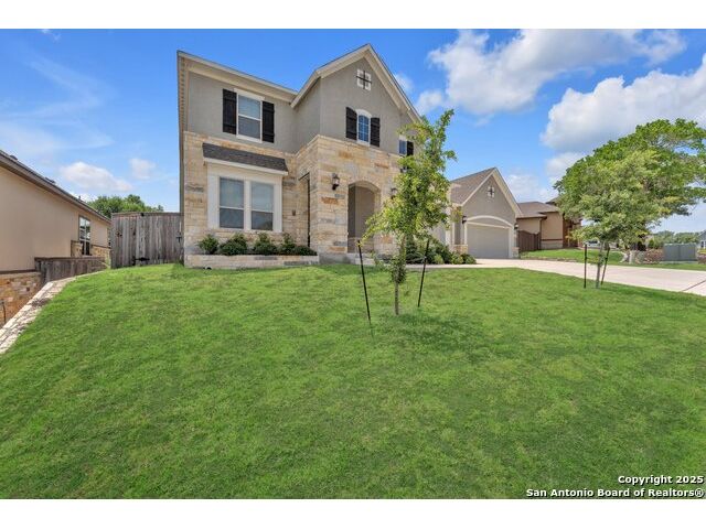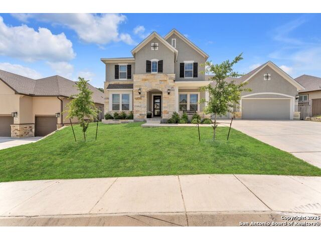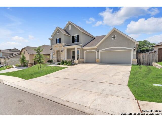 Welcome to this stunning 5-bedroom, 3 1/2-bathroom home, thoughtfully designed for comfort and functionality. Nestled in a highly desirable neighborhood, this residence offers ample space for both relaxation and entertainment. Key Features Include: Generous Living Space - Expansive open-concept layout with high ceilings and abundant natural light. Private Office - Perfect for remote work or a quiet study space. Media Room - Ideal for movie nights or gaming, providing a dedicated entertainment area. Secondary Suite - A spacious bedroom with an en-suite private bathroom, offering privacy for guests or multi-generational living. Chef's Kitchen - Equipped with modern appliances, ample cabinetry, and a large island for gathering. Also featuring double pantries AND double ovens! Luxurious Primary Suite - Features a spa-like bathroom with dual vanities, oversized walk-in shower, and a walk-in closet. Outdoor Living - A large backyard with a covered patio, perfect for entertaining. Comfort features - Be at ease with features like an electrostatic air cleaner, tankless water heater, water softener, reverse osmosis water filter, and a 220 volt plug in the garage for faster EV charging. Convenient Location - Close to top-rated Comal ISD schools, shopping, and dining. This home is a rare find, combining elegance with practicality. Schedule a tour today and experience its charm firsthand!