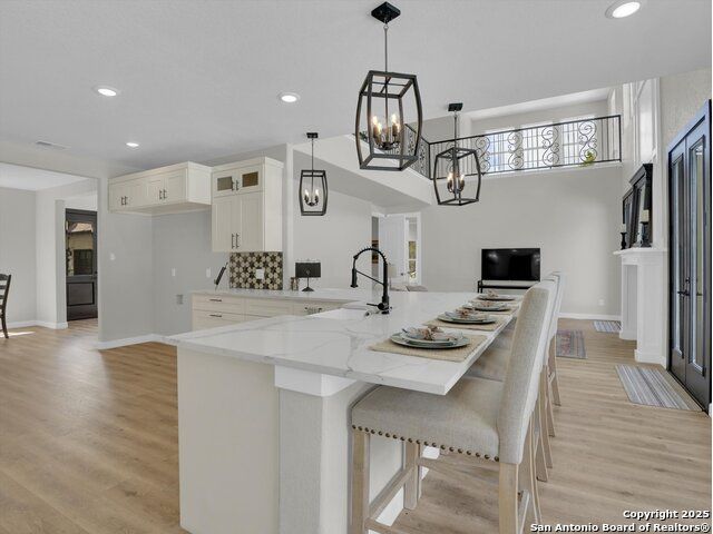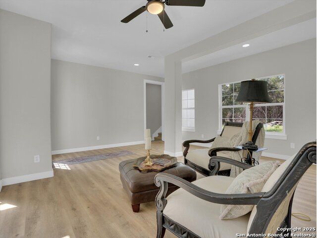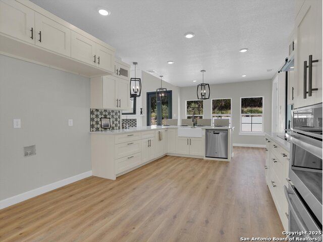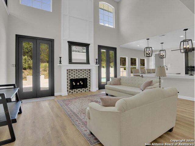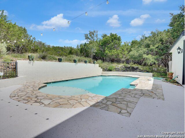 Major price reduction! Discover refined Hill Country living in this elegantly renovated 4,057-sq-ft residence, tucked at the end of a quiet cul-de-sac in Spring Branch's coveted River Crossing. Nestled on 2.09 secluded acres, the home welcomes you with soaring ceilings, walls of windows, and a free-flowing layout that's perfect for everyday life or grand entertaining. At the center of it all is a show-stopping chef's kitchen: quartz countertops, an oversized island, stainless appliances, built-in oven, and a generous walk-in pantry. Living and dining spaces connect seamlessly, creating an easy backdrop for get-togethers. The main-level primary suite feels like a spa retreat, highlighted by a brand-new walk-in shower, designer tile, and quartz-topped vanities. Throughout the home, every detail is refreshed-updated plumbing and lighting fixtures, luxe vinyl plank floors downstairs, and plush carpeting upstairs. Need space for work or play? A private study and a large game room have you covered. Step outside to your own resort: a sparkling pool, built-in grill, and fire-pit terrace overlooking sweeping Hill Country vistas. As night falls, the sky lives up to the address-"Night Sky"-with breathtaking stargazing. Set well back from the street for true estate-style privacy, the property still offers quick access to highly rated Comal ISD schools. If you crave luxury finishes, peaceful surroundings, and unrivaled outdoor living, make your appointment today.