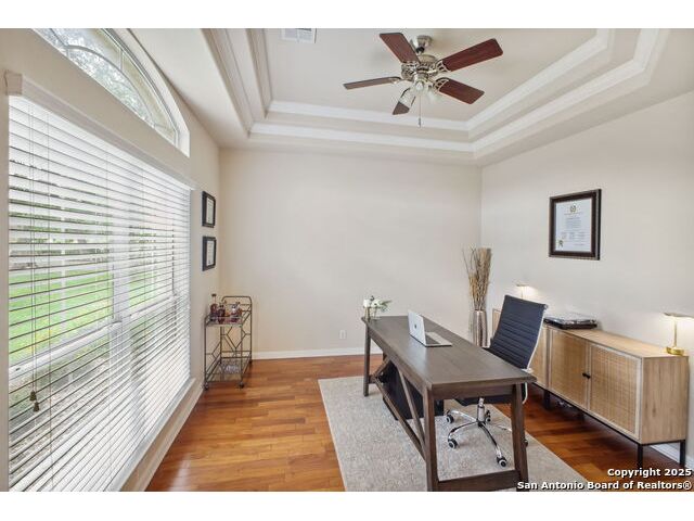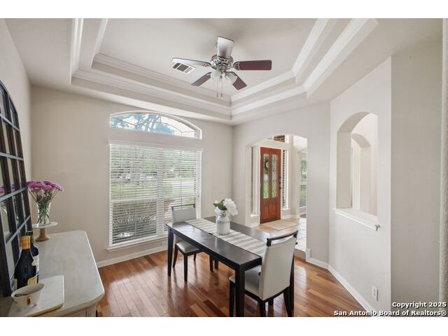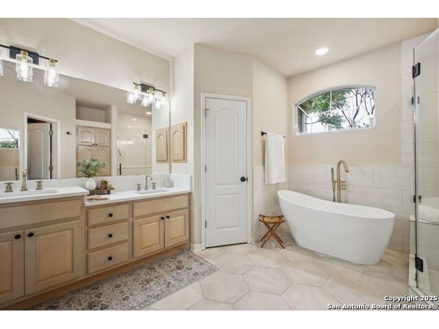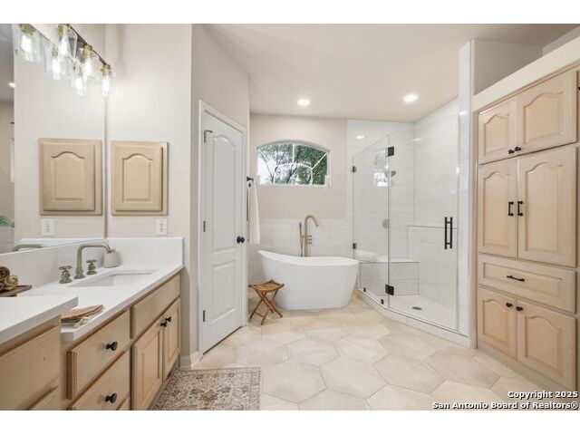 Golf Course Living at Its Finest in Fair Oaks Ranch. A rare gem tucked inside the prestigious Fair Oaks Ranch community. Directly on the fairway of the Live Oak Course designed by the legend Gary Player. With 1.03 acres of manicured Hill Country land, this estate delivers unmatched space, privacy, and views that only a golf course home can provide. From the moment you arrive, you'll be drawn in by the elegant curb appeal and the home's soaring 24-foot atrium entry. Inside, over 2,900 sq. feet of refined living space offers comfort and functionality. With 4 bedrooms, 3.5 bathrooms, and a thoughtfully renovated 1st floor primary suite. The kitchen is designed to impress with quartz countertops, updated backsplash, new cabinet hardware, and an open layout perfect for entertaining. A custom upgraded wood-burning fireplace adds charm and warmth to the living area, blending style with functionality. Additional upgrades include a newer roof, rain gutters, water softener, modern lighting, and enhanced washroom finishes. Observe all types of wildlife from your back porch. Including Deer, Axis, Foxes and Ducks. Fair Oaks Ranch Country Club amenities are just moments away, offering two 18-hole courses, tennis, pickleball, swimming, and a state-of-the-art fitness center. Zoned to top-rated Boerne ISD and ideally located near both San Antonio and Boerne.