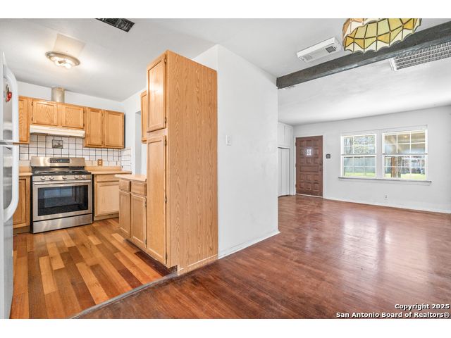 Excellent Investment Opportunity! This charming, centrally located home blends original character with thoughtful updates, making it completely move-in ready. Key upgrades within the last two years include a central AC and furnace, a new roof, water heater, brand-new kitchen flooring, a new gas range, dishwasher, and stainless steel sink. The original oak hardwood floors add warmth and charm, while one bedroom features beautiful mid-century wood paneling for a unique touch. You'll also find original built-in cabinets and shelves that preserve the home's vintage appeal. The air-conditioned garage includes a workbench and a functioning garage door opener-perfect for projects or extra storage. With its prime location and character , this home is an ideal investment and won't last long!