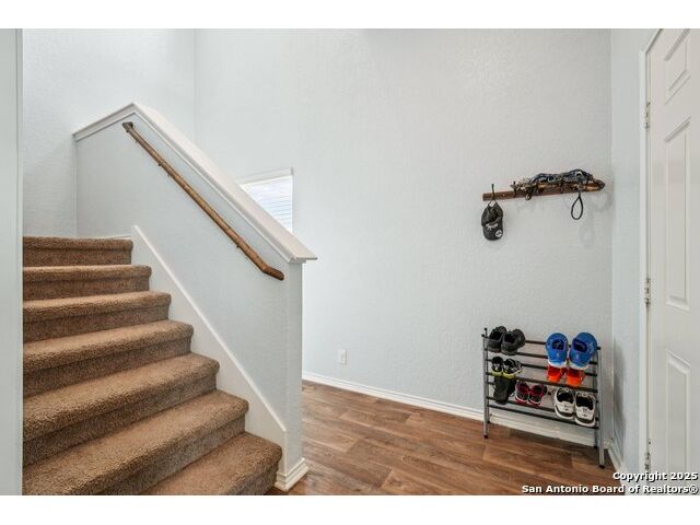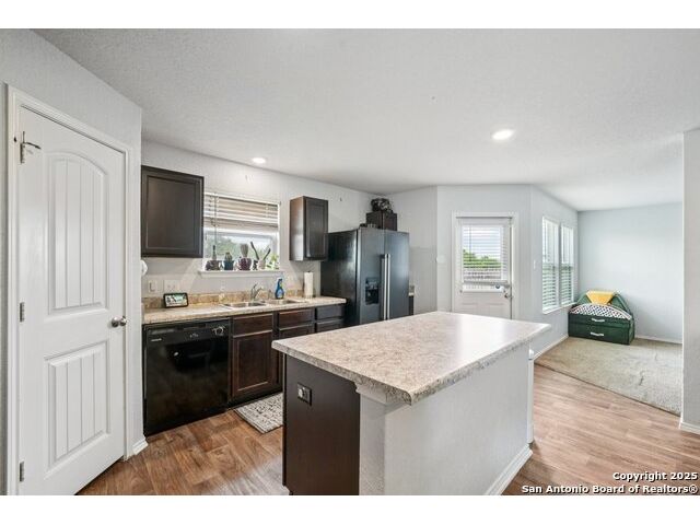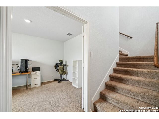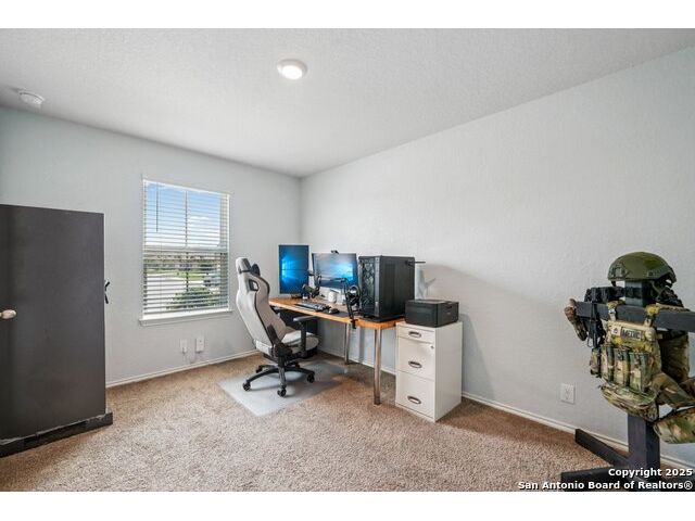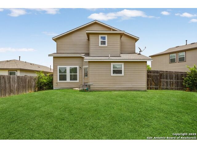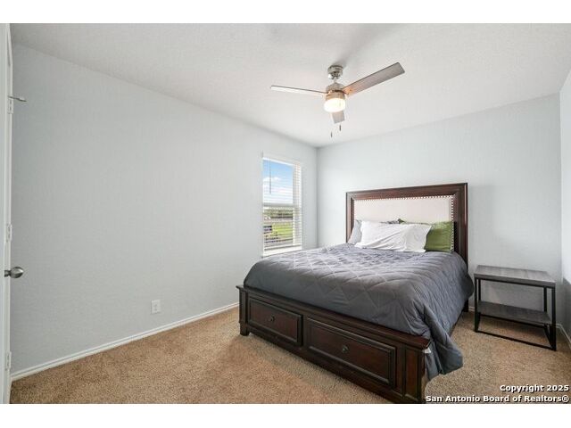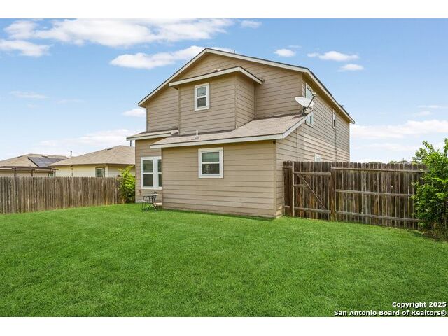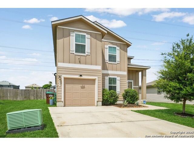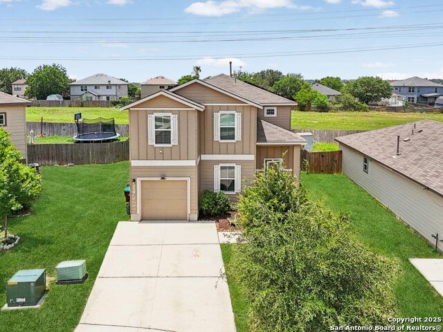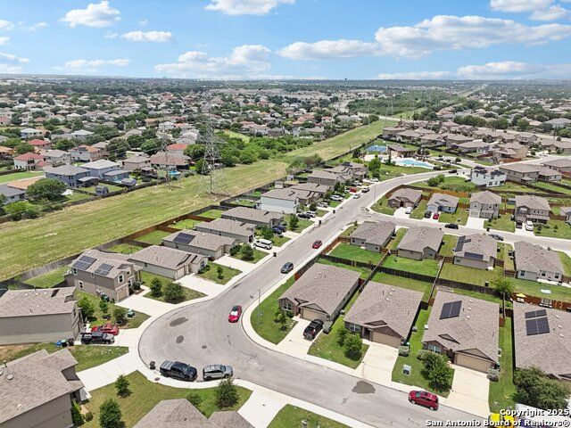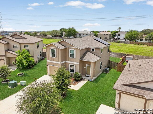 Welcome to your next chapter in comfort and convenience. Located in a quiet cul-de-sac, just steps away from the community pool, park, and sports courts. This charming two-story home not only sits on a greenbelt with no rear neighbors but also comes with fully-owned solar panels - giving you energy savings from day one. From the moment you arrive, the well manicured front lawn and welcoming exterior set the tone. Step inside to find a flexible front office space that's perfect for working from home, tackling creative projects, or serving as a playroom or guest suite. The open-concept living and kitchen area is the heart of the home, with recessed lighting, gas cooking, a large island, and a walk-in pantry, ideal for casual meals and entertaining alike. The living room is cozy yet spacious, painted in modern tones that make it easy to settle in and feel at ease. Out back, a generous-sized yard offers plenty of room for furry friends to roam or for gathering with loved ones on summer evenings. Thanks to the greenbelt behind you, enjoy added privacy and peaceful views year-round. Upstairs, all four bedrooms are thoughtfully placed to give each household member their own space. The primary suite is a calming retreat, spacious enough for a king-sized bed and complete with a serene atmosphere to wind down after a long day. Tech-savvy buyers will love the smart home upgrades-control your thermostat, doors, and alarm system straight from your phone. And with a full sprinkler system, maintaining your yard's curb appeal is effortless. You're minutes from JBSA Randolph, major freeways, and all the essentials - HEB, Target, restaurants, and coffee shops, making everyday life that much easier. This isn't just a home, it's a lifestyle. Quiet streets, community vibes, and everyday ease-wrapped into one well-kept property.