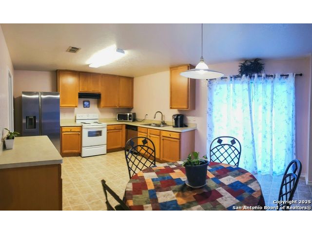 Welcome to this beautiful home located in a peaceful cul-de-sac in the desirable Cheyenne neighborhood. This spacious property features 3 bedrooms, 2 full bathrooms, and a convenient half bath on the main floor and perfect for guests. The primary bedroom offers ample space, ideal for a custom-built bed, and includes a private en-suite bath with dual vanities for added comfort and convenience. Enjoy the quiet backyard, complete with a privacy fence-perfect for relaxing with your favorite drink. Conveniently located near major highways (I-35, Loop 410, and Loop 1604), you're just minutes from Morgan's Wonderland, Randolph Park & Ride, Santikos Entertainment, and IKEA, Randolph AFB and Fort Sam Houston, shopping centers and many favorite restaurants. Additional highlights: Roof replaced 6 years ago, Popular floor plan with a spacious downstairs living area, Large upstairs family room, All bedrooms located upstairs for added privacy. Schedule your showing today and see everything this wonderful home has to offer!
