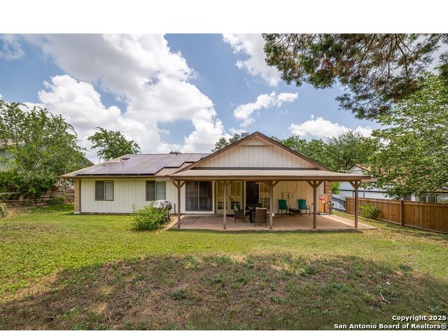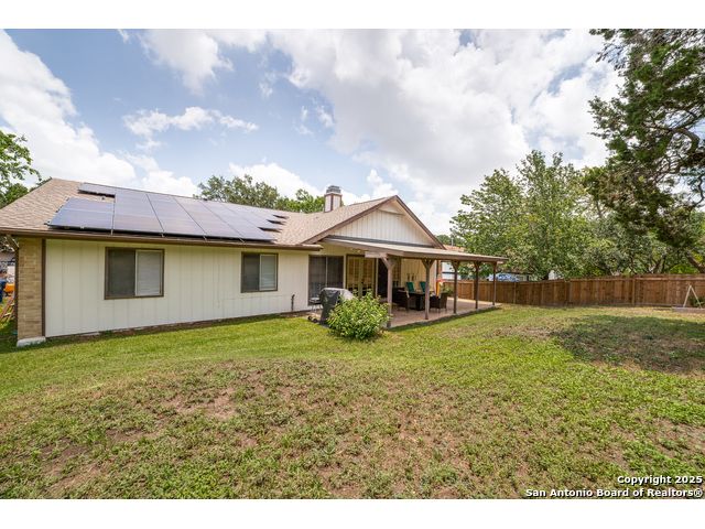 Beautiful One-Story Home with Zero Electric Bill - Move-In Ready! Welcome to this spacious and energy-efficient 4-bedroom, 2-bathroom in northeast San Antonio. With 1,861 sq ft of living space on a generous 0.25-acre lot, this single-story residence has been thoughtfully updated for modern comfort and peace of mind. Both bathrooms remodeled in 2023, with sleek finishes, and contemporary styling. The master bedroom boasts newer flooring as well. The home also features a brand new roof installed in 2024, ensuring durability for years to come. And enjoy zero electric bills thanks to a robust solar system, - a significant savings and eco-friendly advantage. The home also is equipped with a brand new (2023) AprilAire HVAC and Ducting system with added UV light features for optimal air quality. Inside, you'll find an open floor plan with two living areas, two dining areas, a central fireplace, high ceilings, and a spacious kitchen complete with solid granite countertops and modern appliances. The master suite includes a walk-in closet, garden tub, and double vanity. Additional highlights include: Mature trees and a private backyard with a covered patio Located in the highly regarded North East I.S.D. This home combines comfort, style, and smart upgrades - perfect for anyone looking for a move-in-ready property with long-term value. Don't miss this opportunity to own a well-maintained home with modern upgrades and energy efficiency in a quiet, established neighborhood. Come take a tour today!