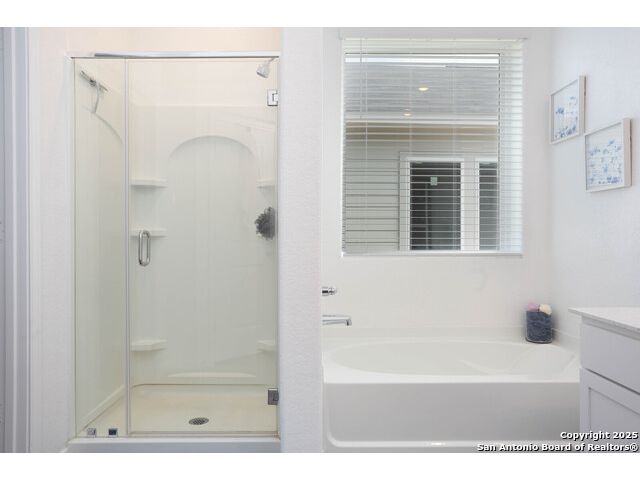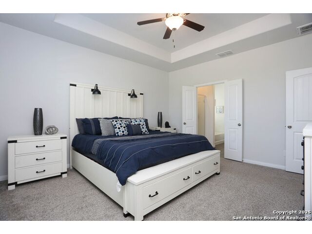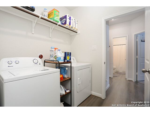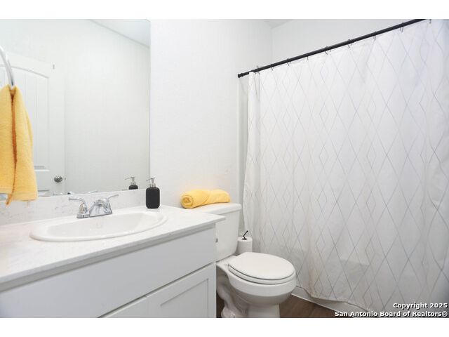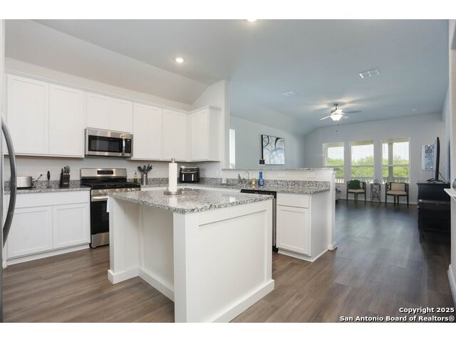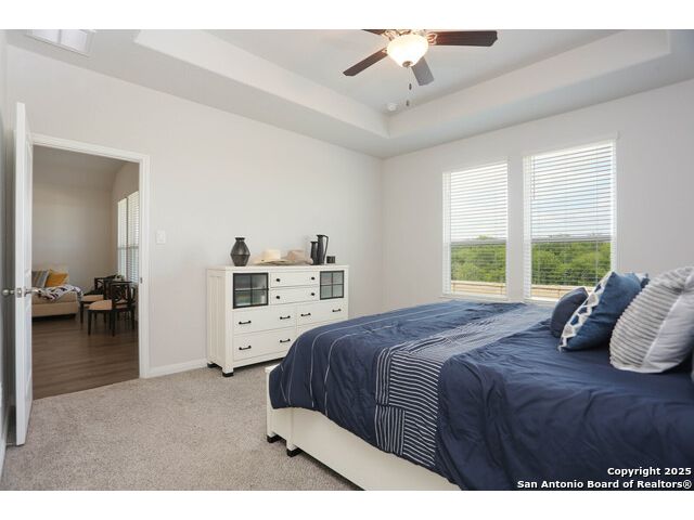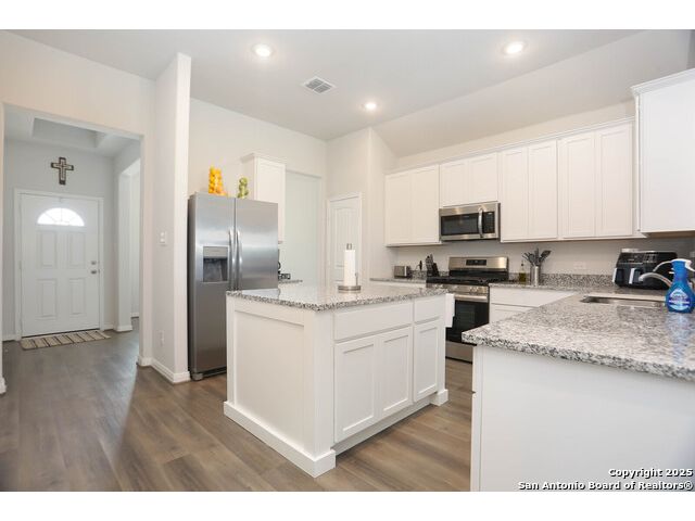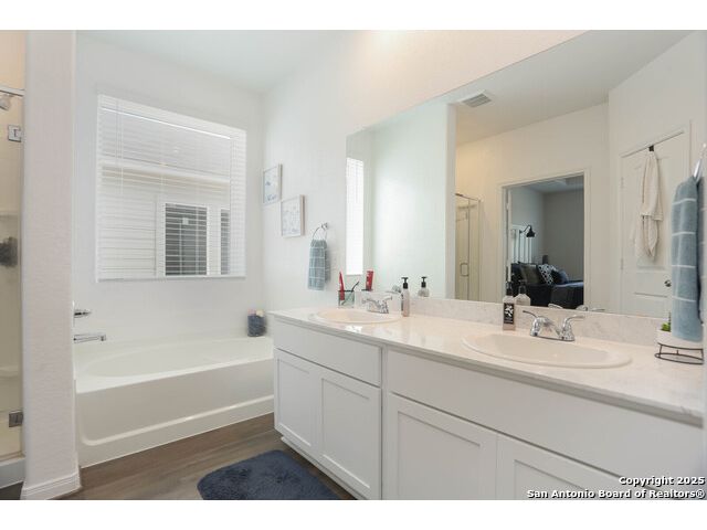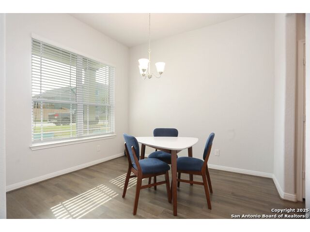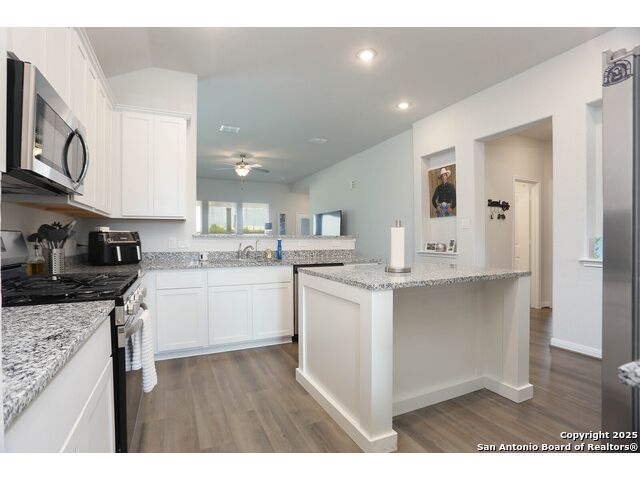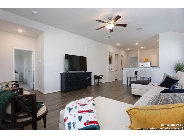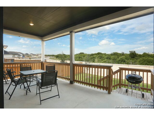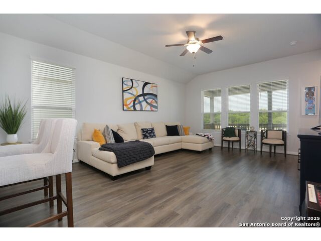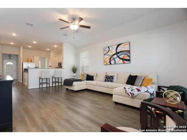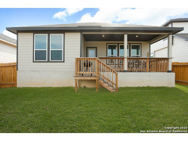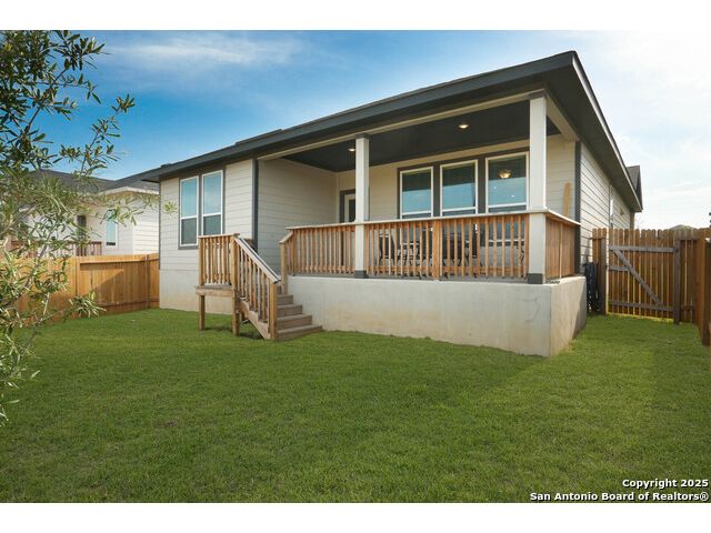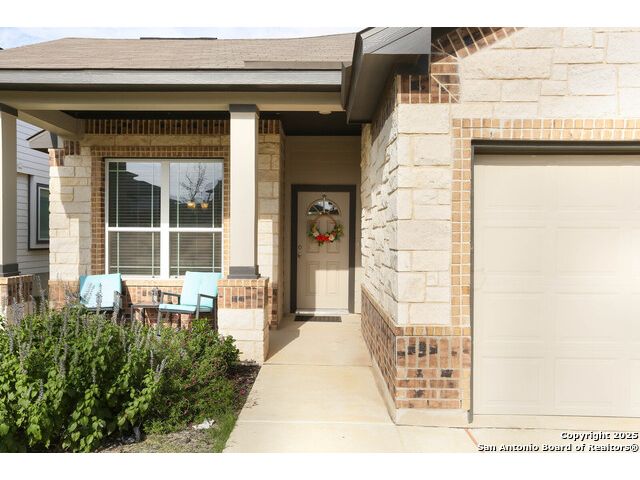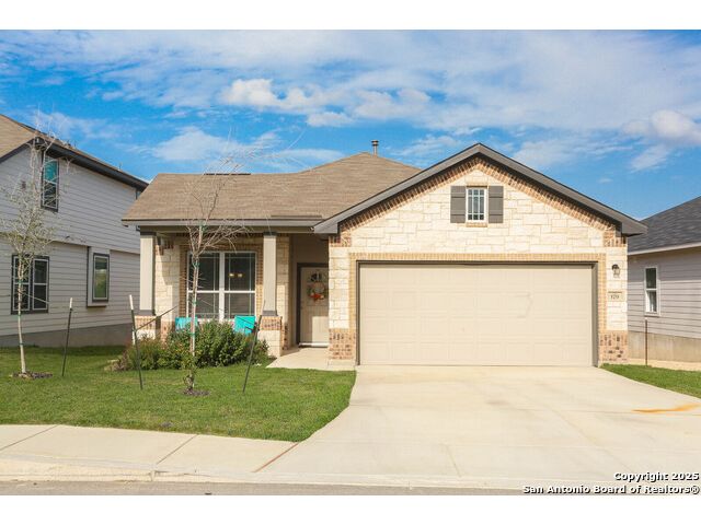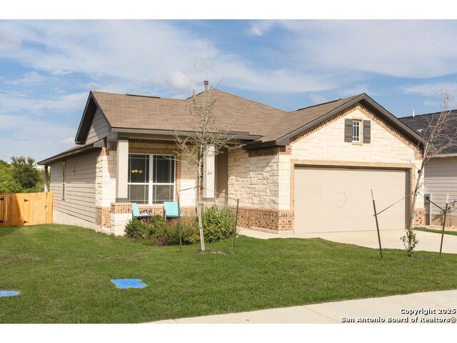 Charming curb appeal with a welcoming covered front porch and stone accents perfect for your morning coffee! Inside, enjoy a spacious family dining area that flows effortlessly into the kitchen, featuring granite countertops, 42" upper cabinets, and stainless steel appliances. The oversized living room is ideal for entertaining guests. Step outside to a huge covered back patio. The private owner's suite includes a garden tub, separate shower, and a huge walk-in closet. Upgraded LVP flooring and plush carpet throughout complete this beautiful home. Located in the highly sought-after Hunters Ranch community, just minutes from Lackland AFB, H-E-B, shopping, restaurants, and entertainment like SeaWorld and Government Canyon State Park. Zoned to Medina Valley ISD, with top-rated schools and convenient access to Loop 1604 and Hwy 211. Enjoy community amenities like pools, pickleball courts, playgrounds, and walking trails.