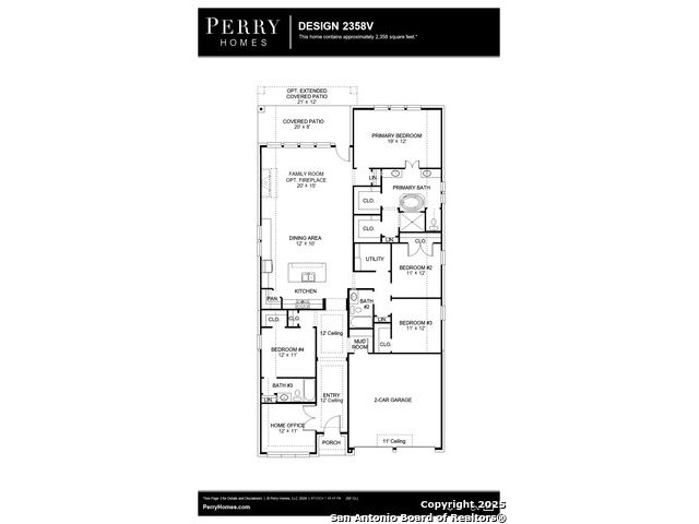 Home office with French doors frame entry. Open family room with wall of windows extends through the dining area. Island kitchen offers built-in seating space and a corner walk-in pantry. Private primary suite with three large windows. Primary bathroom offers a French door entry, garden tub, separate glass enclosed shower, dual vanities, two walk-in closets and a linen closet. Guest suite with full bathroom and a walk-in closet. Additional bedrooms with walk-in closets, a utility room, additional bathroom and a linen closet completes this design. Extended covered backyard patio and 5-zone sprinkler system. Mud room off the two-car garage.