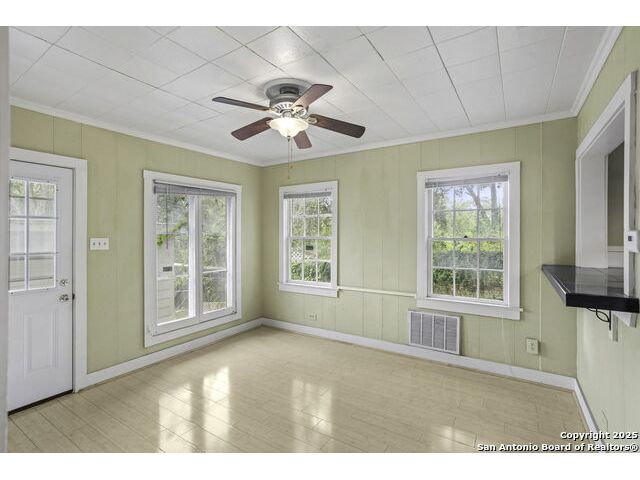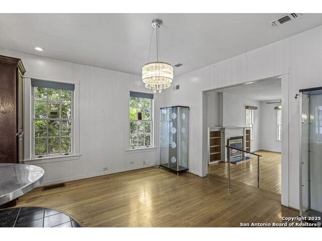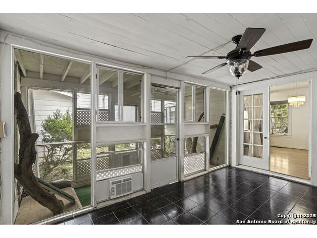 Welcome to 527 Kings Ct, a 1935 Craftsman gem nestled in the heart of the Monte Vista Historic District-just steps from Trinity University. This charming residence sits on an expansive 0.72-acre lot and offers a rare blend of character, space, and opportunity in one of San Antonio's most storied neighborhoods. Inside the main home, you'll find timeless architectural details and generous room sizes spread across 1,972 square feet of livable space. While the home has seen thoughtful updates over the years, it still offers the perfect canvas for your personal touch and creative vision. Just off the main living areas, a spacious Florida Room with a dedicated window unit offers additional flex space-perfect for an office, playroom, or studio. Tucked behind the main residence, the carport features two enclosed sides-one used as a utility/storage area with washer and dryer connections, and the other built out as a fully finished, 600+ square foot guest unit. This separate dwelling includes its own kitchen, dining room, living room, bedroom, bathroom, and large walk-in closet-all with central heating and cooling. The expansive lot is home to multiple mature oak trees, including one estimated to be over 400 years old, adding both beauty and history to the grounds. You'll also find two oversized "catios," an 8x10 storage shed, and room to dream. Whether you're looking to restore a historic beauty, create a multigenerational setup, or explore income-producing options, this property offers unmatched flexibility in an unbeatable location.