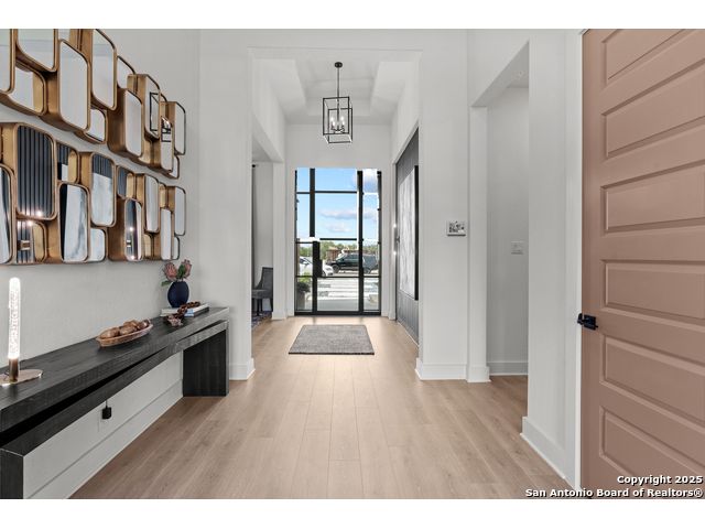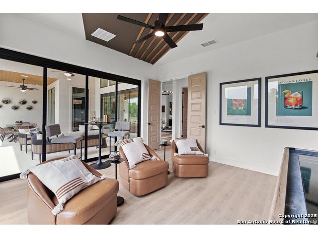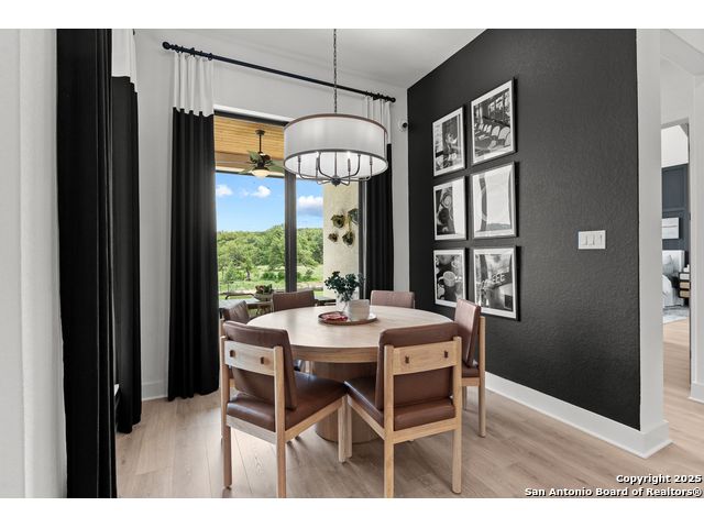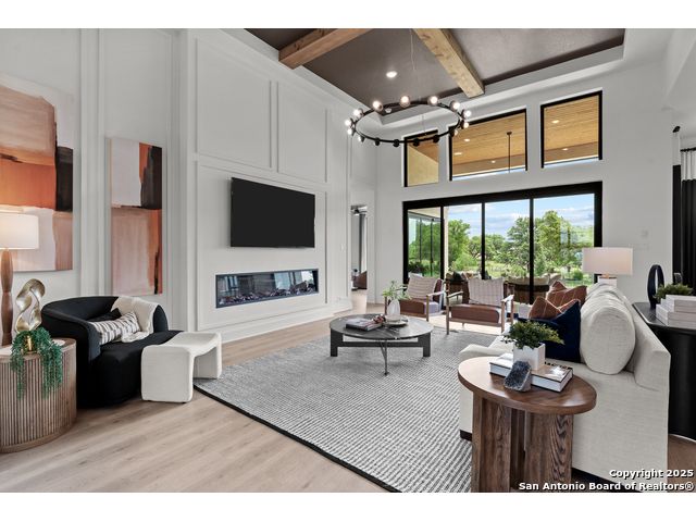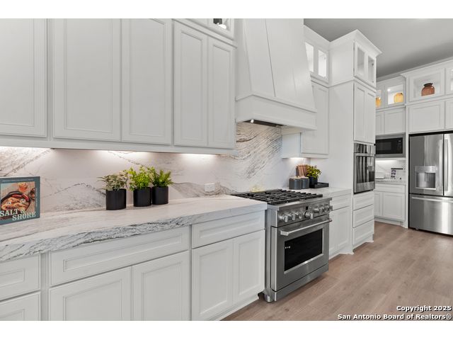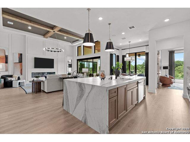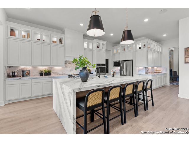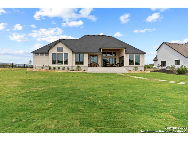 Move in ready! Beautiful one-story home with 5 Bedrooms, 4.5 Bathrooms, 4 Car side entry garage and circular driveway on a 1/2-acre lot all nestled in a beautiful, wooded neighborhood right outside of Garden Ridge, Tx. Walk in through the magnificent 6 x 8-foot Magnolia Front door into this 3600 square foot home which boast an open floorplan with a fabulous kitchen with double ovens, oversized kitchen island with apron sides and a stainless-steel farm sink. The kitchen also features beautiful upper cabinets with glass inserts and puck lighting. This home stands out with wooden shutters across the front, featuring 4.5' louvers and clear line hidden tilt function. The large family room features oversized sliding glass doors which lead out to a fabulous outdoor living area. The family room also includes a 60" Allusion Platinum indoor fireplace.