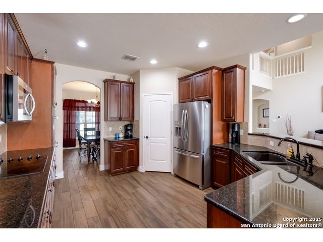 This exceptional two-story home offers luxury with a spacious floor plan at 5 bedrooms, 2 flex rooms, 3.5 bathrooms and sits on 1.21 acres-one of the largest lots in the neighborhood. Step outside to a large covered patio and deck, perfect for relaxing by the pool during the warm summer days. The home backs up to a ranch with horses, cows and lots of deer to enjoy watching from the patio. Step into elegance where you'll find an expansive living area with ample natural light and newly installed ceramic tile throughout. The home additionally features fresh interior paint, new baseboards, an updated kitchen with granite countertops, 42" custom cabinets, double oven, and stainless steel appliances. Enjoy two primary suites-one downstairs with a jacuzzi tub, an oversized walk-in closet with another possible primary suite upstairs to make your own. Upstairs, you'll find 6 additional bedrooms with walk-in closets, 1 en-suite bathroom and another full bathroom, a possible flex space option for one of the rooms to be an additional workspace or media room. Extras include an extra-large shed (16x32), a two car driveway with an extended header for all your parking needs, a six-month-old zero-turn lawn mower, a walk-behind weed eater,(both negotiable with an acceptable offer). Roof replacement in 2021 and the property also includes a 1.5-year septic contract, with the system pumped in January-ready for its next owner. Do not wait to make this spectacular home one that your family will cherish for many years. Schedule your private tour today to uncover the reason why Canyon Ranch Estates has homes built to appreciate anyone!