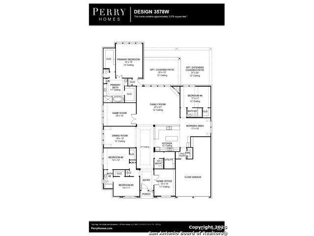 Home office with French doors set at entry. Hardwood floors throughout living areas. Extended entry leads past formal dining room to open family room with a sliding glass door and corner wood mantel fireplace. Open kitchen features center island, two wall ovens, 5-burner gas cooktop and walk-in pantry. Guest suite with private bath off morning area. Primary suite includes bedroom with wall of windows. Dual vanities, a freestanding tub, separate glass-enclosed shower and two walk-in closets in primary bath. High ceilings and walls of large windows add to this spacious four-bedroom design. Extended covered backyard patio. Mud room off three-car garage.