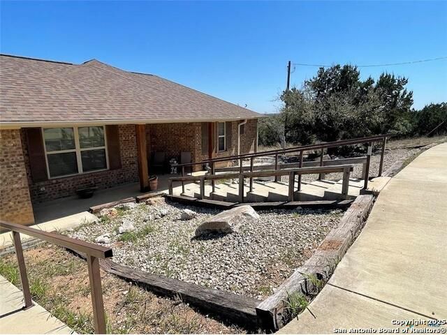 Gorgeous newer home w/ hill country views for miles. 3 bedroom 2 bath on .68 of an acre. Big 2 car garage w/ huge circle driveway. Plenty of parking. Come out and view today. (Some of the furnishings can convey w/ home for extra money) Covered back deck with exceptional view. Split floor plan. Very large master bedroom w walk in closet. Guest bath room is very spacious and has grab bars. Large garage has been insulated and finished. Stairs to attic area. Must see property.