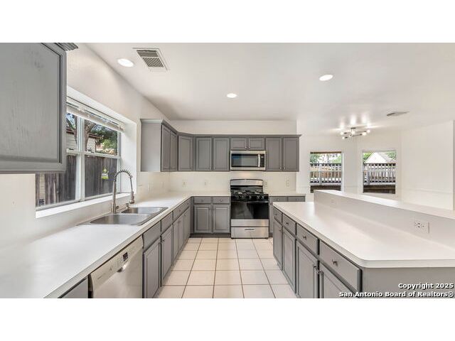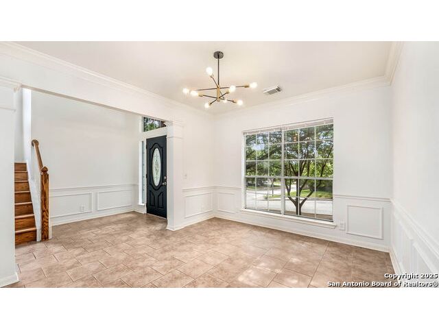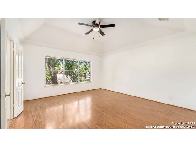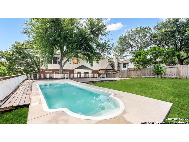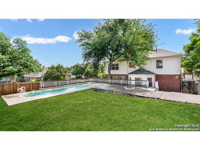 Grand Two-Story Home on a Spacious Corner Lot with Pool - Gated Community Living Welcome to this impressive two-story home nestled on a large corner lot shaded by mature trees in a serene, gated neighborhood. With a unique and flexible layout, this home offers the perfect blend of style, comfort, and versatility. Step through the vaulted entryway adorned with crown molding and chandelier into a space that immediately feels like home. Featuring 4 generously sized bedrooms with walk-in closets and upgraded high-end laminate flooring-this home has no carpet, offering both elegance and easy maintenance throughout. The heart of the home is the open-concept island kitchen with a breakfast bar, newly installed granite counter tops and tile backsplash, casual dining area, and an adjacent flex space that can be tailored to your needs-ideal for a sitting area, informal dining, or a cozy workspace. A separate formal dining room near the entry offers additional flexibility and can easily be converted into a study. Entertain with ease in the spacious family room with views of the backyard and pool, all centered around a see-through fireplace that connects the family room and kitchen area-creating a warm, inviting flow throughout. Upstairs, all bedrooms are conveniently located, including a luxurious primary suite featuring a large en-suite bath with double vanities, an oversized countertop, separate garden tub, and walk-in shower. Enjoy year-round comfort with dual HVAC systems and create your own backyard oasis with a sparkling in-ground pool, deck, and patio-perfect for relaxing or entertaining. Located just minutes from UTSA, USAA, the Medical Center, shopping, dining, and top-rated schools, this home truly has it all. Don't miss your opportunity-schedule a showing today. You won't be disappointed!