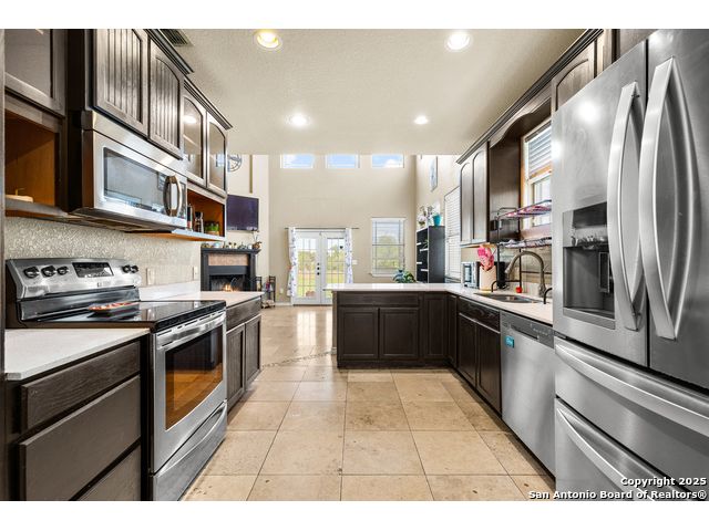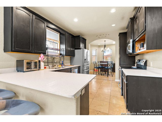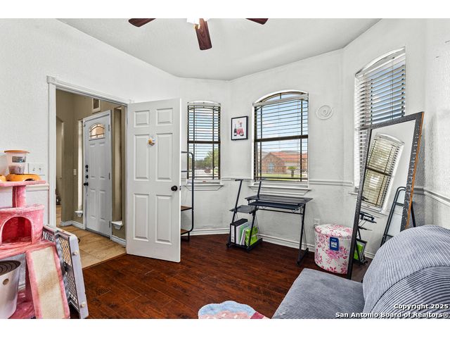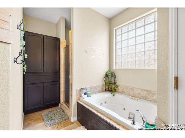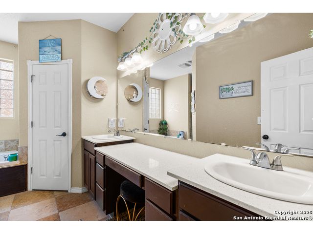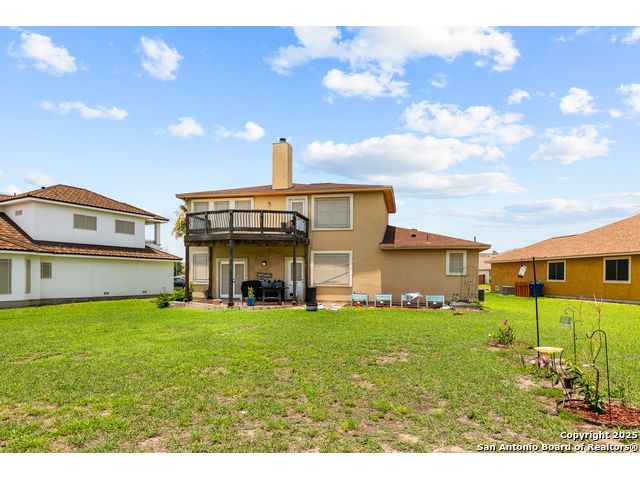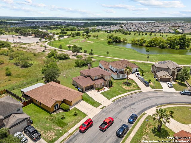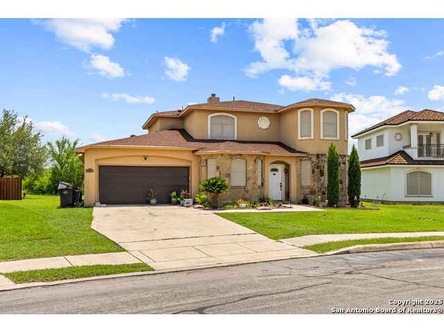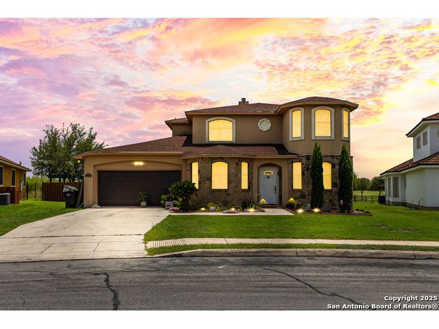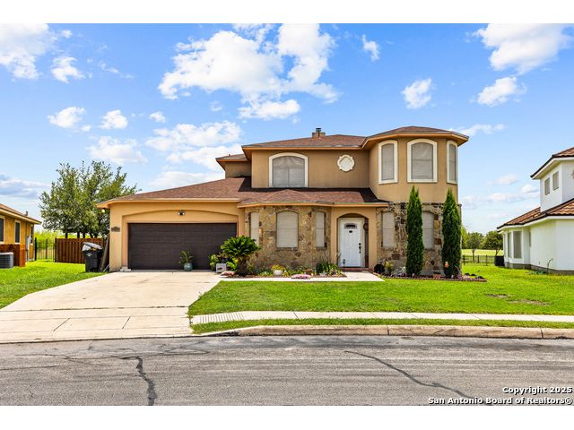 Assumable FHA loan at 2.65 rate. Experience the best of Texas living in this magnificent two-story Spanish-style home, gracefully positioned on a lush golf course. From its charming stucco and stone exterior to its spacious 5 bedrooms and 2.5 baths, every detail exudes curb appeal and comfort. 5th bedroom on main level can be flex office space. Primary Bedroom on main level. Roof is 4 years old. A dedicated two-car garage provides ample parking, while the prime location offers unparalleled access to major highways and the Toyota Plant and Palo Alto College, simplifying your daily routine without sacrificing the tranquility of golf course living. Amenity center with Pool, Basketball Court and walking trails throughout!