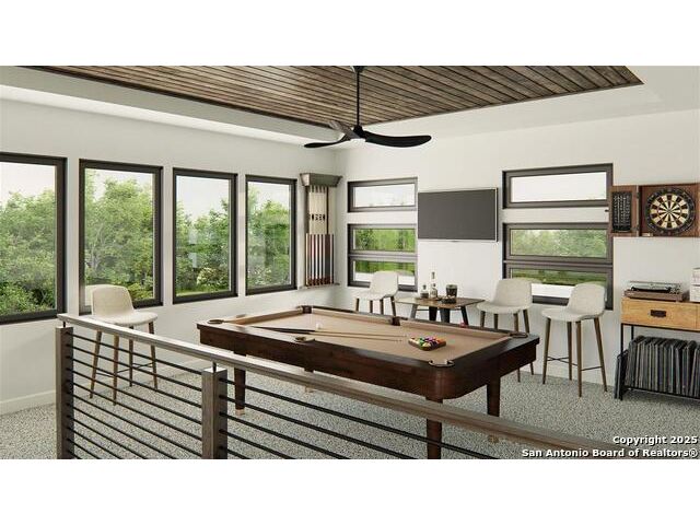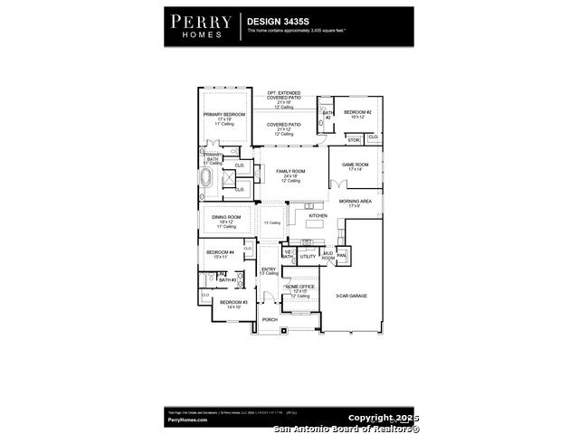 READY FOR MOVE-IN! Home office with French doors set at entry. Formal dining room off extended entry. Open family room features wood mantel fireplace and a sliding glass door. High ceilings throughout. Island kitchen offers generous counter space, two wall ovens, 5-burner gas cooktop and walk-in pantry. Game room with French doors off morning area. Primary suite includes bedroom with 11-foot ceiling and curved wall of windows. Dual vanities, freestanding tub, separate glass-enclosed shower and two large walk-in closets in primary bath. A guest suite plus a Jack-and-Jill bath add to this spacious one-story design. Extended covered backyard patio with 12-foot ceiling. Landscaping features a 7-zone sprinkler system. Mud room off three-car garage.