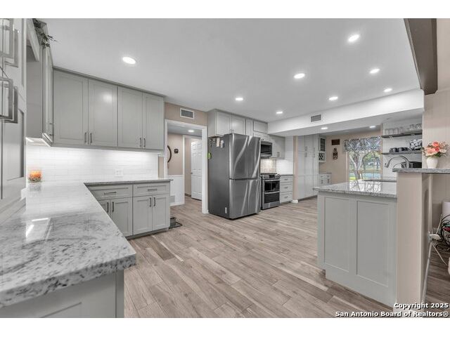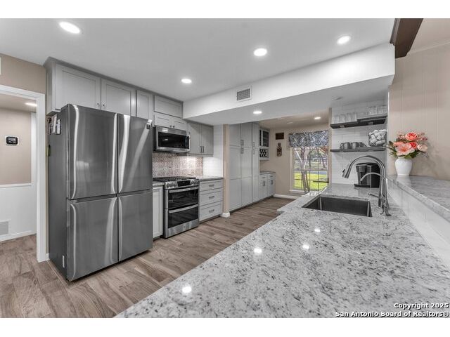 Welcome to 11650 Sunset Ranch-where modern upgrades meet country charm! This move-in ready ranch is nestled on 8.41 breathtaking acres in Helotes, offering the perfect setup for multigenerational living or income-producing opportunities. The main home has been completely renovated and features 4 spacious bedrooms, 2.5 beautifully updated bathrooms, a 2-car garage, and a whole-house generator for peace of mind. The second home is a fully upgraded 1900 sq ft manufactured doublewide with 3 bedrooms and 2 bathrooms-ideal for guests, tenants, or extended family. Outside, you'll find a massive 2700 sq ft metal shop, a second 1200 sq ft metal shop, and a 1600 sq ft metal animal barn with livestock pens and ample storage. This property is fully equipped for country living, hobbies, business, or livestock-all with easy access to city conveniences. A rare opportunity to own a truly versatile and turn-key ranch property!