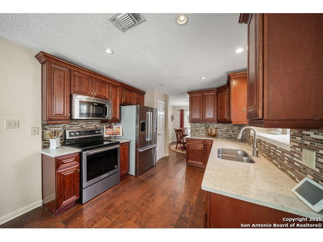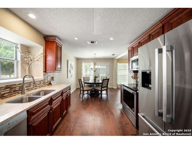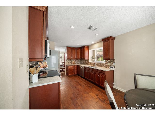 New Price & Freshly Painted! Welcome to this beautifully refreshed 2-story home in the highly desirable Northern Heights neighborhood-where mature trees, an established community feel, and excellent curb appeal come together in one perfect setting. Offering 3 spacious bedrooms, 2.5 bathrooms, and nearly 2,000 sq. ft. of comfortable living space, this home effortlessly blends style and functionality. The fresh interior paint creates a light, airy feel throughout, while the updated eat-in kitchen shines with custom cabinetry, granite countertops, stainless steel appliances (including refrigerator), and abundant storage. Enjoy cozy evenings in the inviting living room, or retreat to the downstairs primary suite featuring an ensuite bath and generous walk-in closet. Upstairs, a versatile game room, two secondary bedrooms, and a full bath provide plenty of space for family or guests. Located in the sought-after NEISD school district and minutes from top-rated schools, shopping, dining, and entertainment, this home offers the best of convenience and community. Don't miss your chance to own this Northern Heights gem-now at a new price and move-in ready with fresh paint!