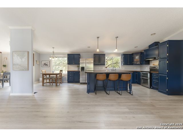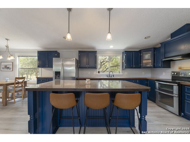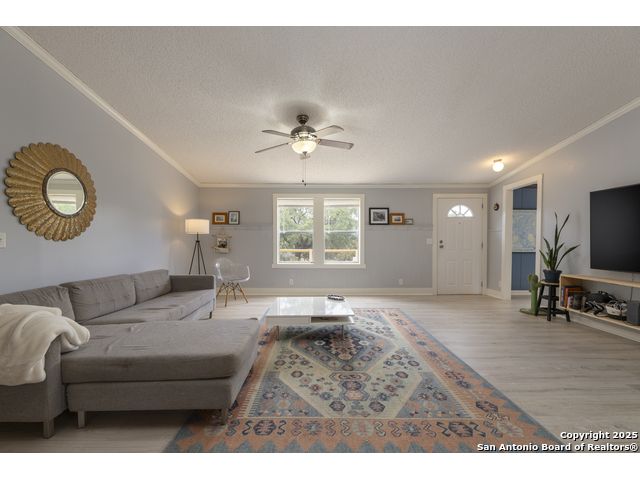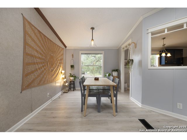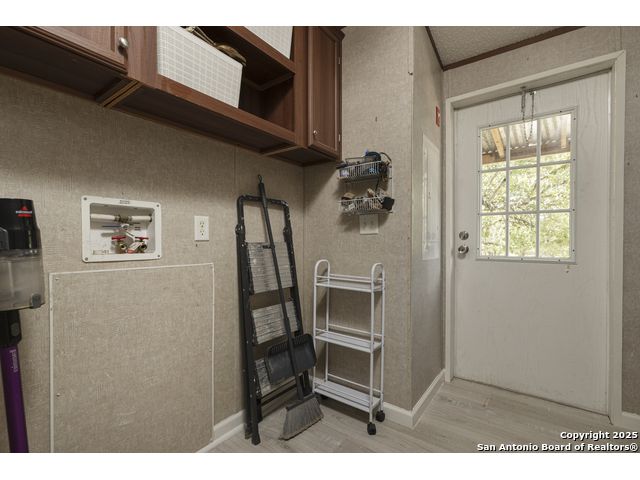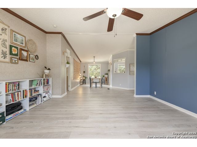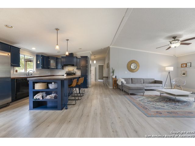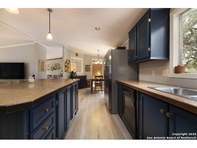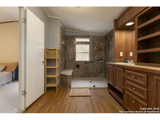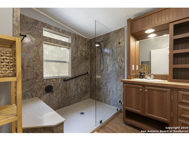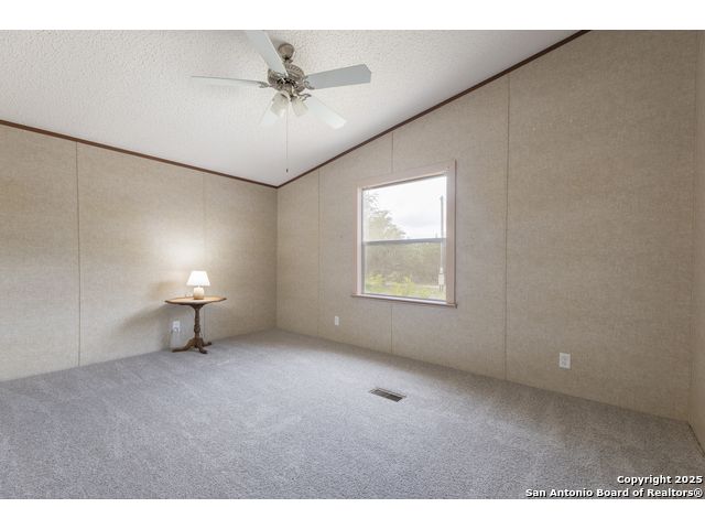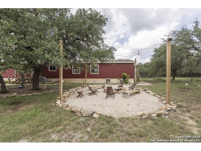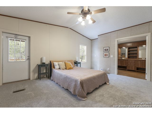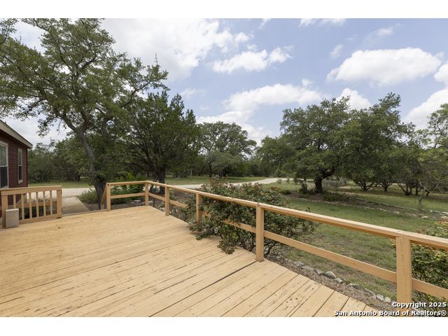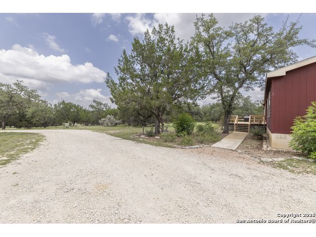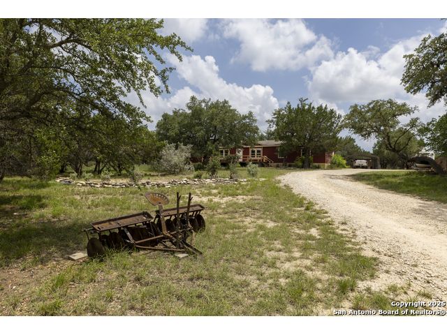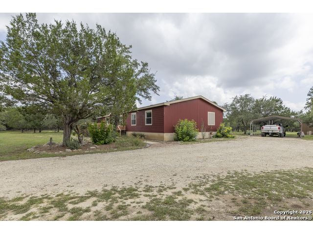 Peaceful Hill Country living on 5.14 private, fully fenced acres! This 4-bed, 2-bath, 2,356 sq ft manufactured home (FHA/VA ready) features an open-concept kitchen, two living areas, and two dining spaces. The oversized primary suite includes private outdoor access, a walk-in closet, and a wheelchair-accessible walk-in shower. Secondary bedrooms offer generous space for family or guests. Enjoy wildlife views from the large front porch or the covered back patio. The property includes a covered carport, multiple open and enclosed sheds, a fire pit area, and primarily flat land-perfect for horses, cattle, or a workshop. A brand-new AC unit was installed this year for year-round comfort. Located in a quiet, gated community near Medina Lake with no HOA restrictions. Ideal for retirees, homesteaders, remote workers, or anyone seeking space and privacy. Beautiful night skies, mature live oaks, and room to spread out-don't miss this rare Hill Country retreat.